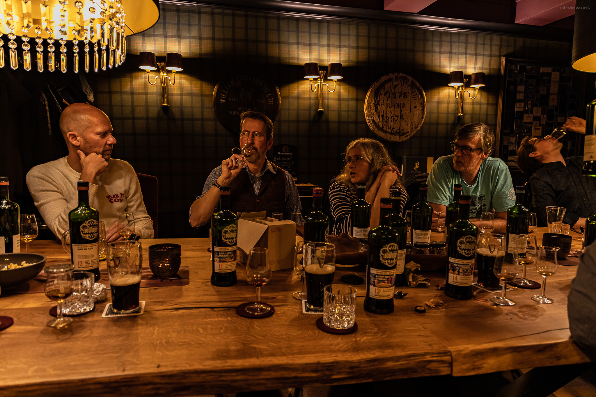 Nun ist das 5. Treffen auch schon wieder Geschichte. Schön war’s. Endlich wieder mit Gleichgesinnten über Sinniges oder auch nicht so ganz Sinniges sinnieren, das war fein. Die Örtlichkeit war quasi prädestiniert für eine solche Veranstaltung. Ich kann es gar nicht genug wiederholen, die Whiskyplaza in der Hamburger Deichstrasse mit seinem Tasting-Room ist für solche Treffen in nicht ganz so grosser Runde (max. 14 Nasen) wie geschaffen. Und unsere Gastgeber Björn, Verena und natürlich das ganze Team der Plaza haben uns hervorragend mit allem Benötigten bestens versorgt. Da blieben, zumindest bei mir, keine Wünsche offen.