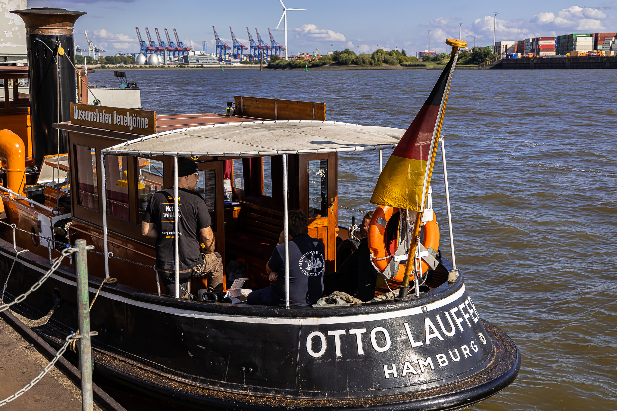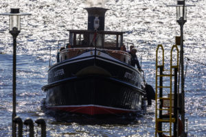Vor mittlerweile einigen Jahren durfte ich schon einmal bei so einer Tour im Rahmen eines SMWS-Tastings dabei sein und diese ist mir bleibend in Erinnerung geblieben. Damals wie heute sind wir mit der kleinen und in die Jahre gekommenen Dampfbarkasse „Otto Lauffer“ in die Tiefen des Hamburger Hafens mit seinen unzähligen Seitenarmen und Verästelungen hinausgefahren. Der kleine Dampfer ist gerade mal 17m lang und knapp 4m breit und wurde im Jahre 1928 auf der Stülckenwerft hier in Hamburg erbaut. 2017 wurde er einer grundlegenden Restaurierung unterzogen und ist seitdem für den Hamburger Museumshafen unterwegs.