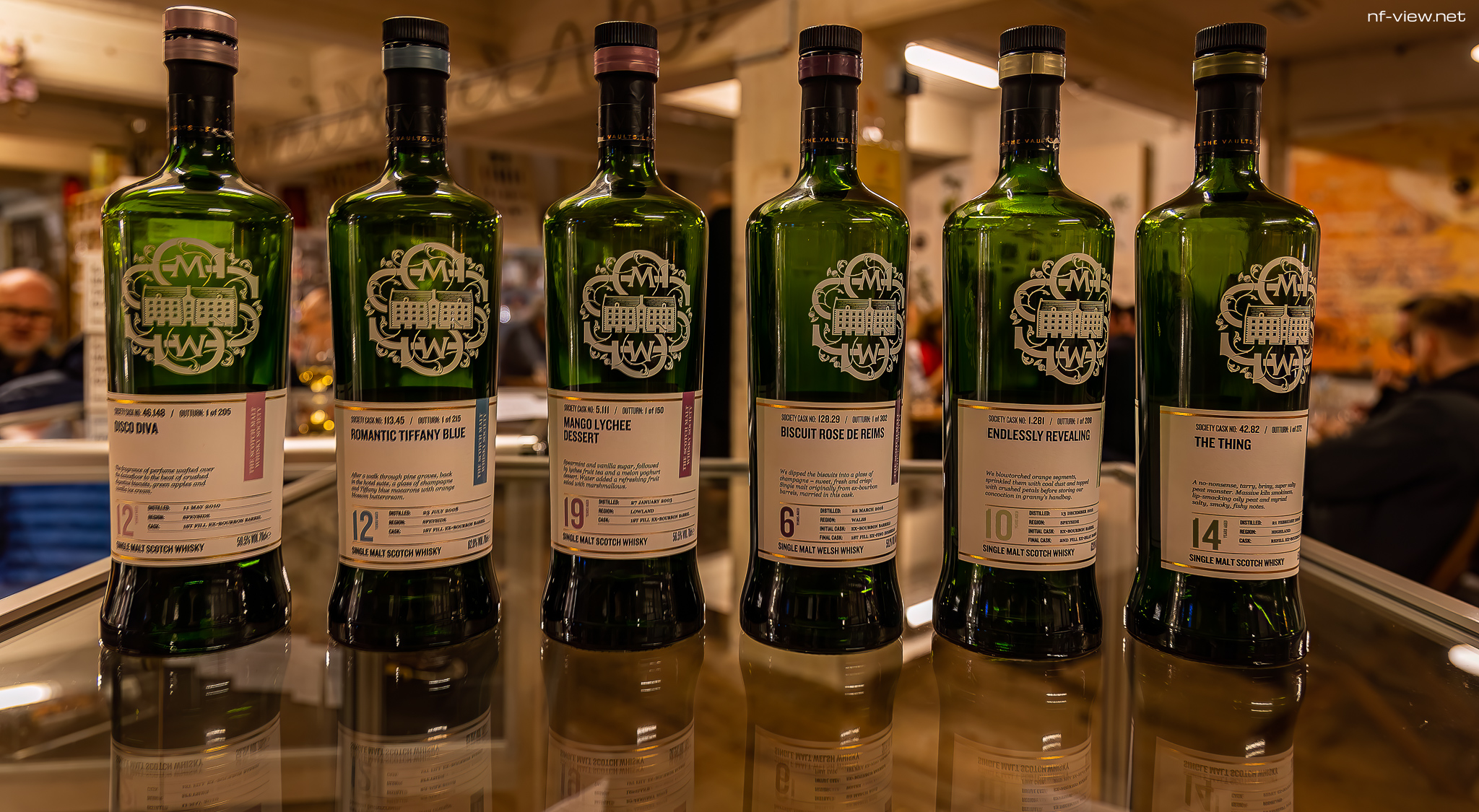 Zurück zum ursprünglichen Thema, die Whiskies zum Tasting. Es wurden 6 Abfüllungen ausgeschenkt, wobei jede Abfüllung einem anderen Geschmacksprofil zugeordnet war. Ich meine, dass wir das bis dato auch noch nicht so häufig hatten, mag mich aber auch täuschen.