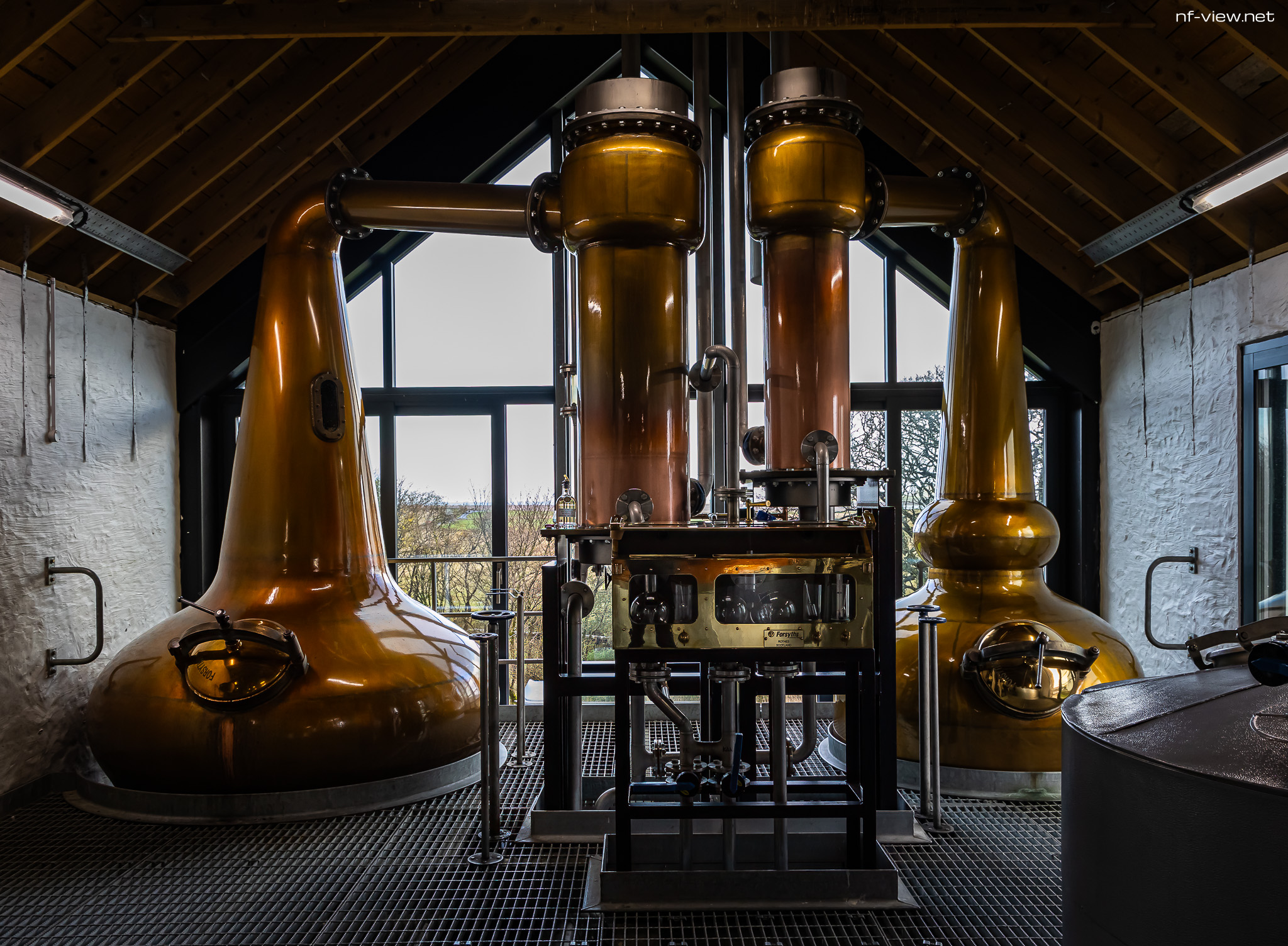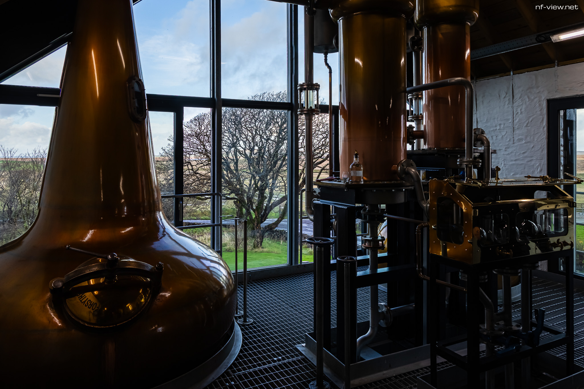 Die erste Destillerie auf unserer Agenda war Kilchoman, die jüngste Brennerei auf der Insel, die Whisky produziert und verkauft. Unlängst wurde der älteste Kilchoman Whisky abgefüllt und in Umlauf gebracht. Satte 16 Jahre ist er alt, leider habe ich ihn nicht probieren können. Naturgemäß sind das Visitor Centre und die Brennerei selbst sehr modern eingerichtet und ausgestattet, da relativ neu. Gerade das Besucherzentum fand ich schön weiträumig und geschmackvoll eingerichtet. Durch Glaswände getrennt findet man hier auch Tasting- sowie Besprechungsräume.