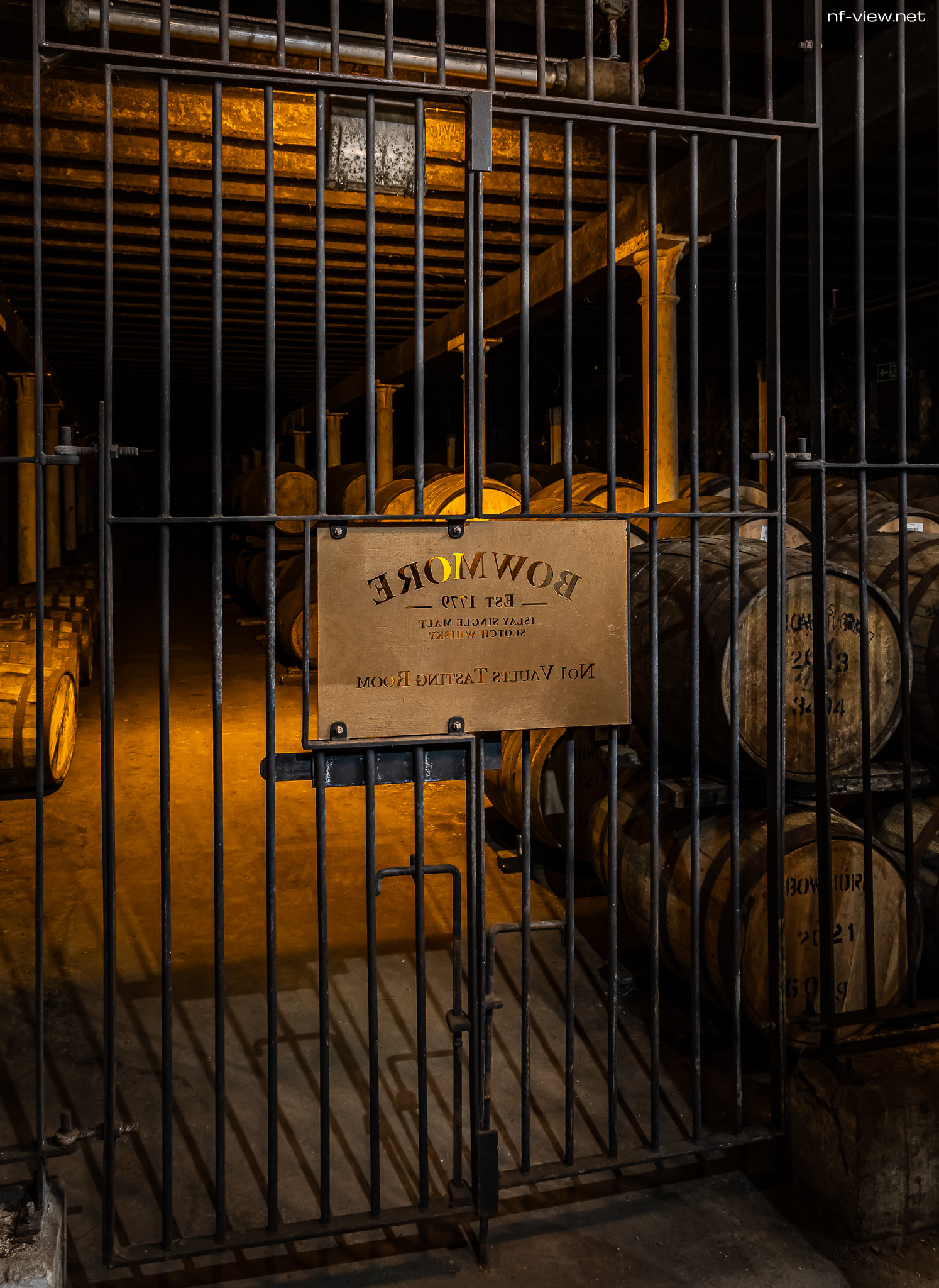 Nachdem wir bei Kilchoman rausgekehrt wurden, ging dann die Reise flugs weiter nach Bowmore in die gleichnamige Destillerie. Dort hatten wir ein No.1 Warehouse Tasting geordert. Bis dato konnte ich nicht wirklich etwas mit Bowmore anfangen, erst in den letzten Monaten habe ich mich ein wenig mit den Abfüllungen dieser Islay Brennerei anfreunden können.
