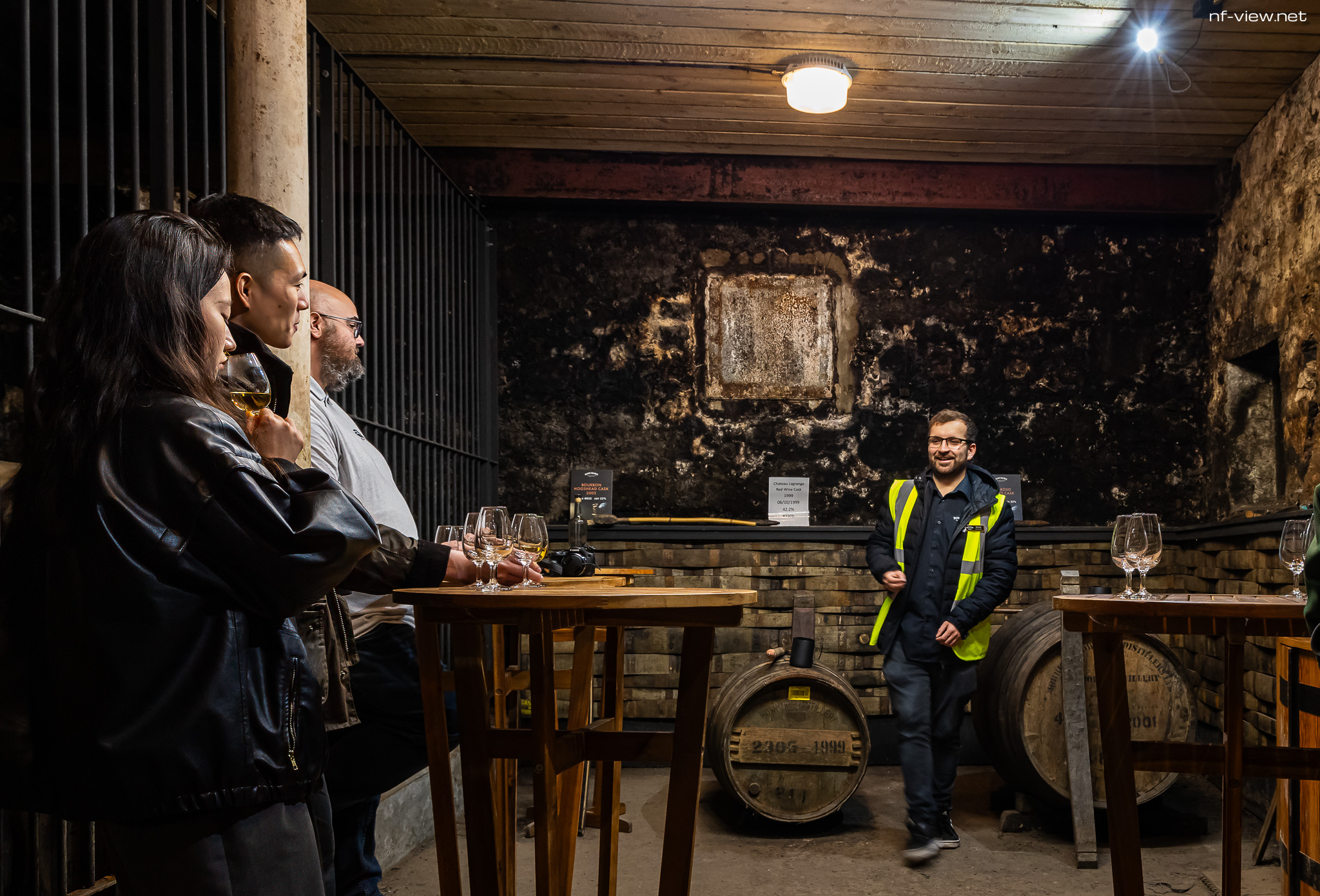Das Tasting ging allerdings mit einer Kurzführung durch Teile der Brennerei los, ehe wir dann im Warehouse No.1 verschwanden. Der Weg zum Tasting Room, welcher sich hinter Gittern befand, ging durch einen Teil des No.1 Warehouses und schon dort beschlich mich eine leichte Ehrfurcht ob der dort lagernden Fässer. Da lagen Mizunara Casks einträchtig neben einigen Fässern für das britische Königshaus. Im Tasting Room angekommen ging es nach einer kurzen Einführung durch unseren Tour Guide auch schon los.