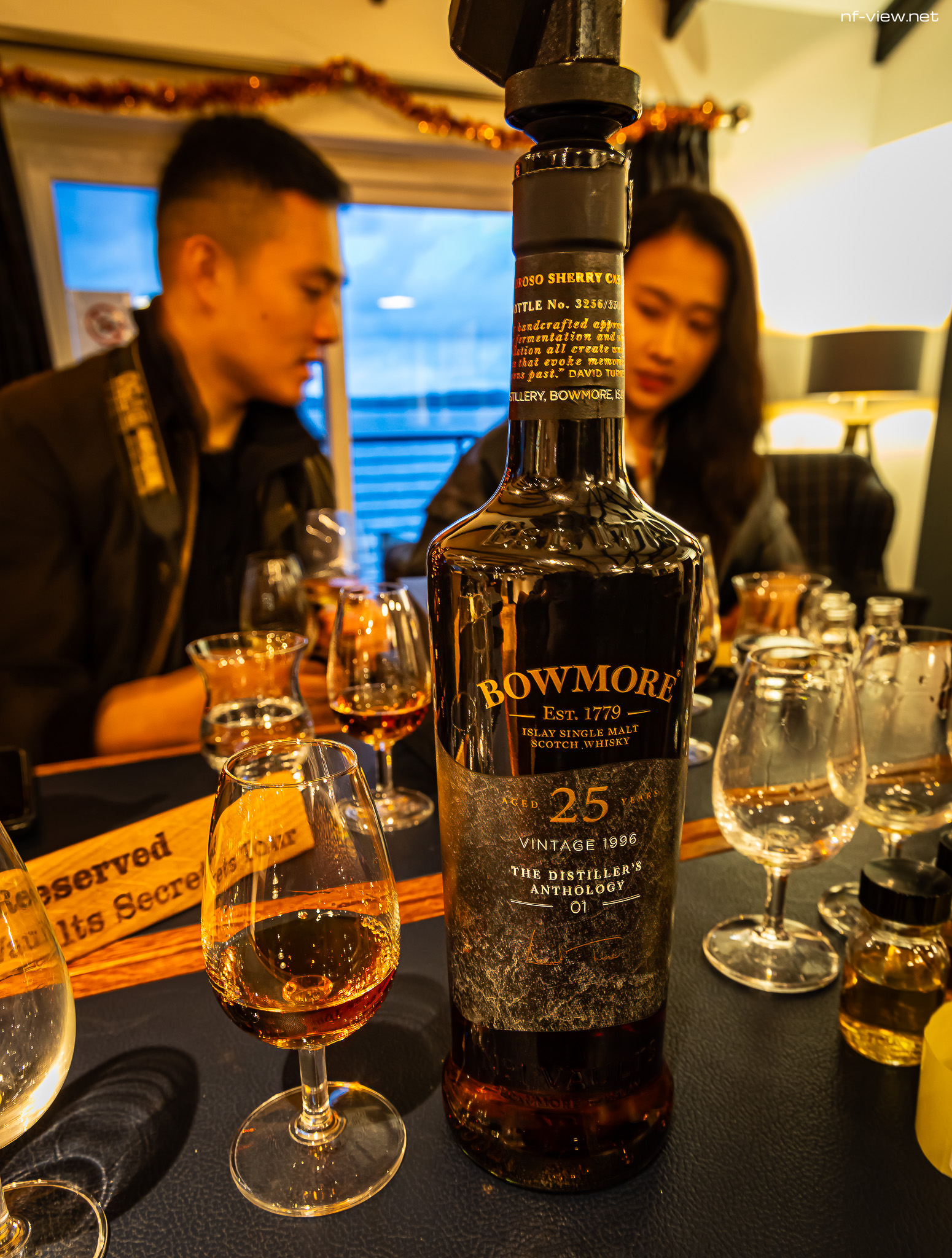 Aber das war noch nicht alles. Wir gingen dann direkt zurück zum Visitor Centre an die dortige Bar, wo wir uns noch einen Dram aus einem bestimmten höherpreisigen Segment von Bowmore Flaschen aussuchen konnten und in Ruhe genießen durften. Meine Wahl fiel hier auf einen 25-jährigen Bowmore mit dem klangvollen Namen The Distiller’s Anthology 01. Dieser stammte ebenfalls aus einem Oloroso Cask und war dann das berühmte Tüpfelchen auf dem i. Danach war ich dann auch richtiggehend geflasht ob der verkosteten Whiskies.