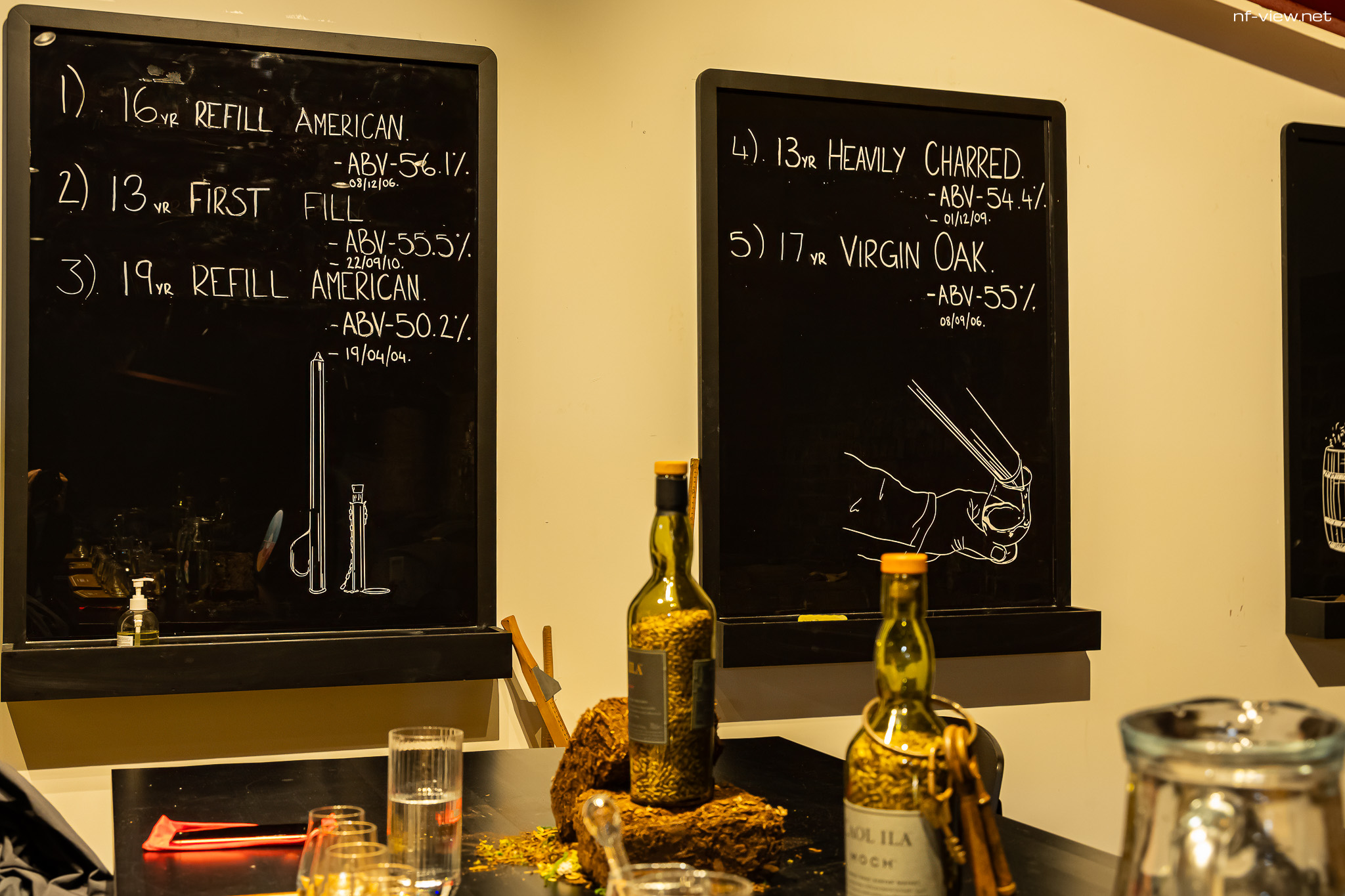 Das gebuchte Tasting fand dann selbstredend im Show Warehouse statt und wurde professionell durchgeführt. Die Kandidaten wurden jeweils kurz vor ihrer Verkostung aus dem Faß gezogen und in die Gläser gefüllt und es wurde ziemlich genau darauf geachtet, dass nicht über den Eichstrich ausgeschenkt wird. Das hatten wir bei den anderen Destillerien auf Islay auch schon anders erlebt. Aber da merkt man halt das man in einer Brennerei des Getränkegiganten Diageo zu Gast ist. Es machte auf mich insgesamt betrachtet den Eindruck eines durchgestylten und auf Massentourismus ausgerichteten Besucherbetriebes. Das alles klingt jetzt wahrscheinlich negativer als es tatsächlich war, was wohl aber meiner Sichtweise auf Diageo geschuldet sein dürfte.