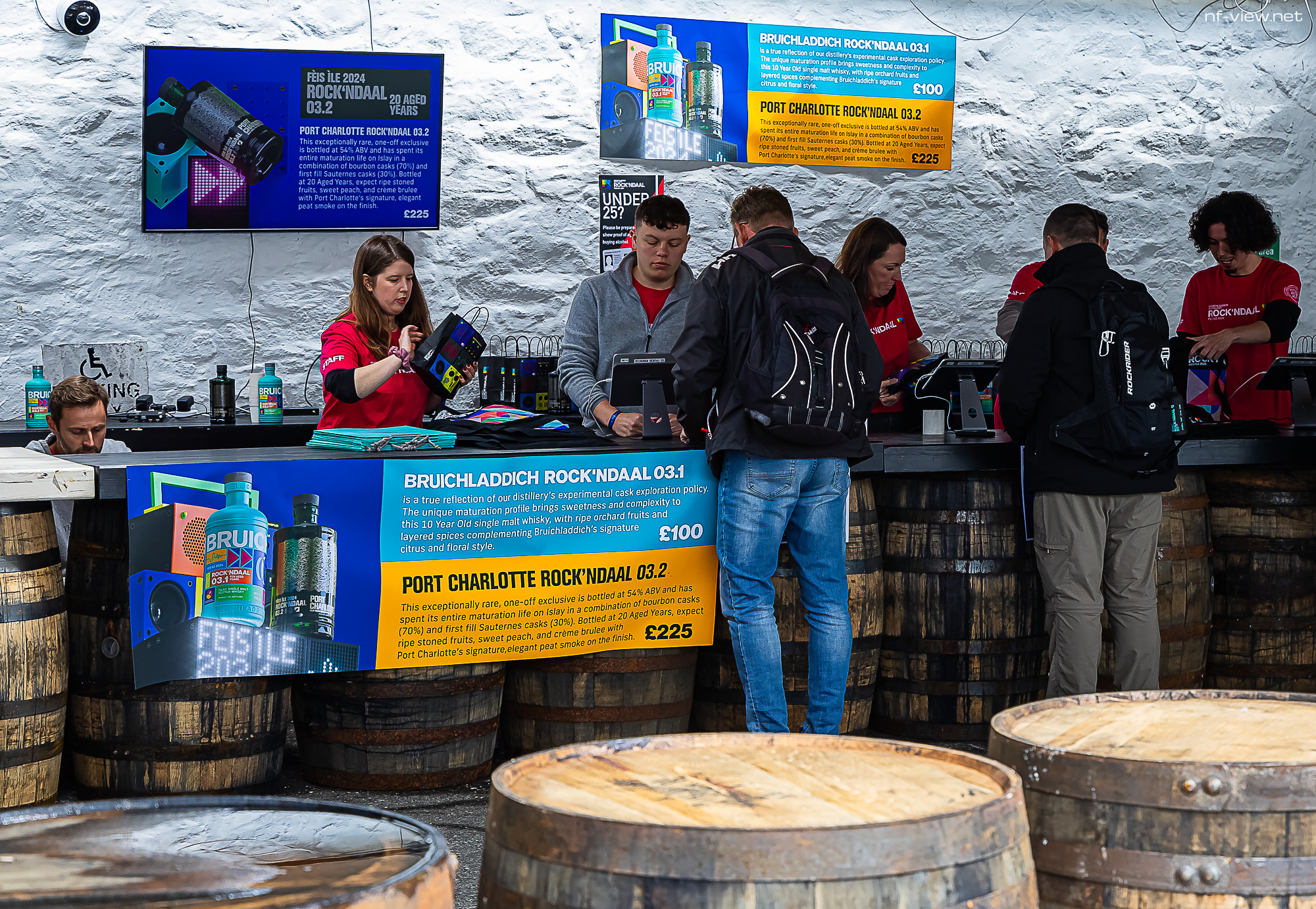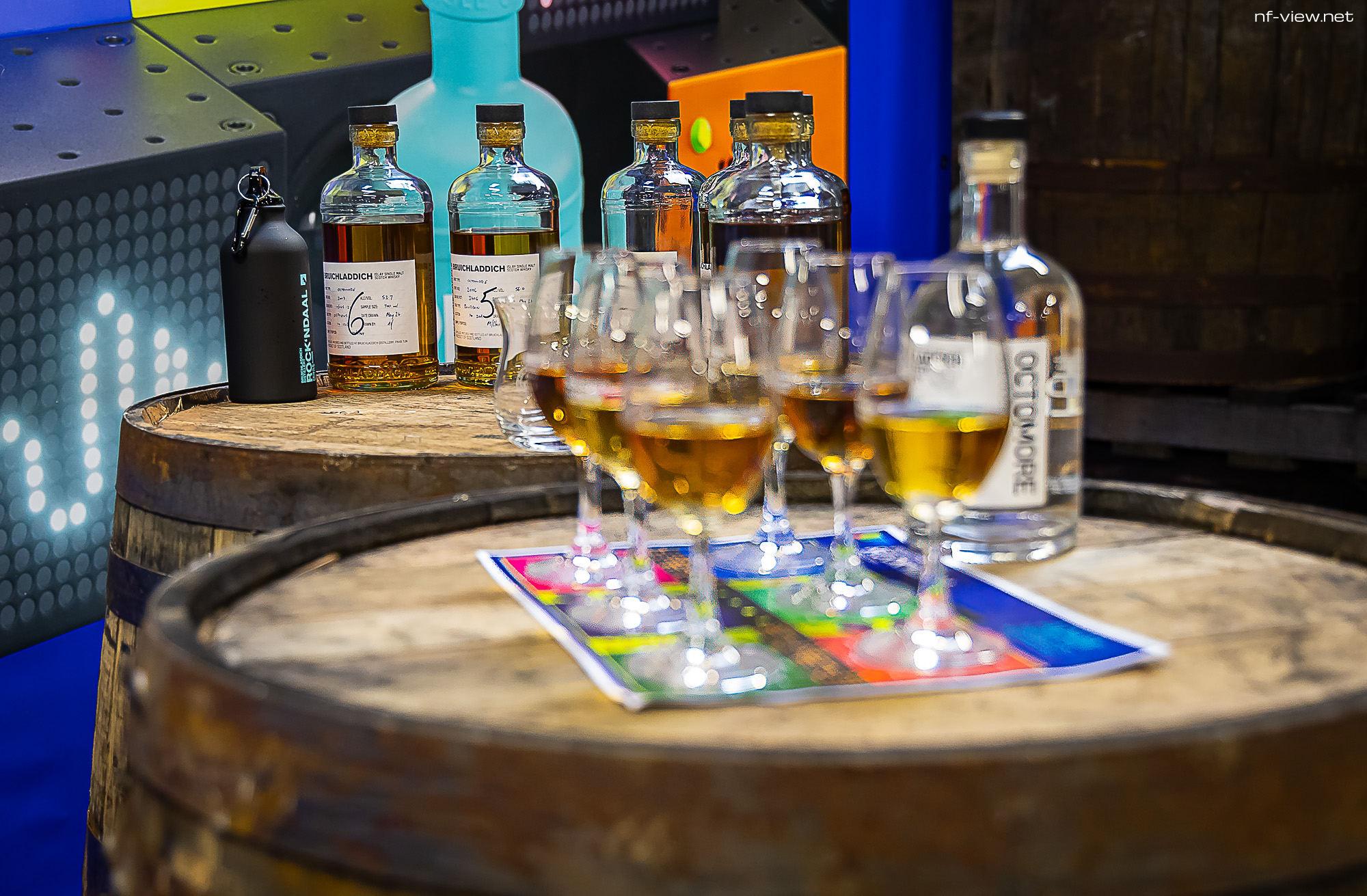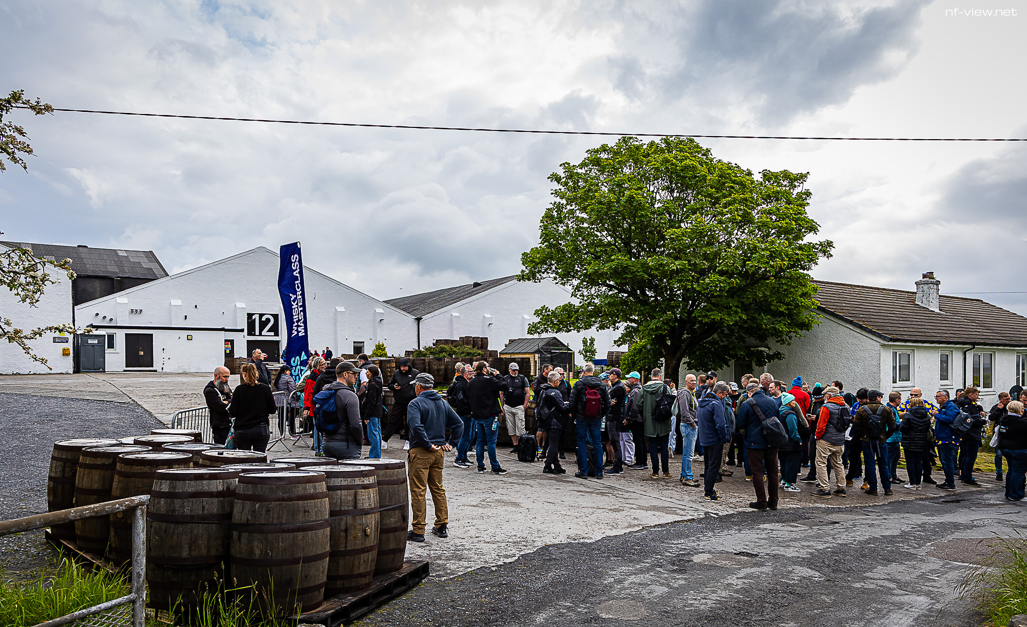 Von dieser fantastischen Masterclass noch ganz geflasht, wurden wir dann mit dem Menschenstrom in den Laddie Open Day hinausgespült und mussten uns erstmal akklimatisieren und etwas feste Nahrung zu uns nehmen. Danach stromerten wir noch einige Stunden über das Gelände, probierten noch den ein oder anderen Dram, schauten uns das Rahmenprogramm an und hatten einen genehmen Nachmittag. Das der Open Day, wie weiter oben schon erwähnt, an einem Sonntag stattfand, war das Brennerei Gelände gut gefüllt, nicht nur mit "Fachpublikum", sondern auch mit vielen einheimischen Familien, die das Ganze als eine Art Volksfest verstanden, was ja eigentlich auch die ursprüngliche Intention dieses Events war. Erwähnenswert fand ich noch die Versteigerung von einigen besonderen Flaschen vom diesjährigen Fèis Ìle. Da wurden dann u.a. von Adam Hannett handsignierte Flaschen für gemeinnützige Vereine meistbietend unters gemeine Whiskyvolk gebracht, wobei Flasche 1 der diesjährigen, 21 Jahre alten Fèis Ìle Abfüllung von Octomore mit, glaube ich, 6000 GBP den Vogel abschoss.