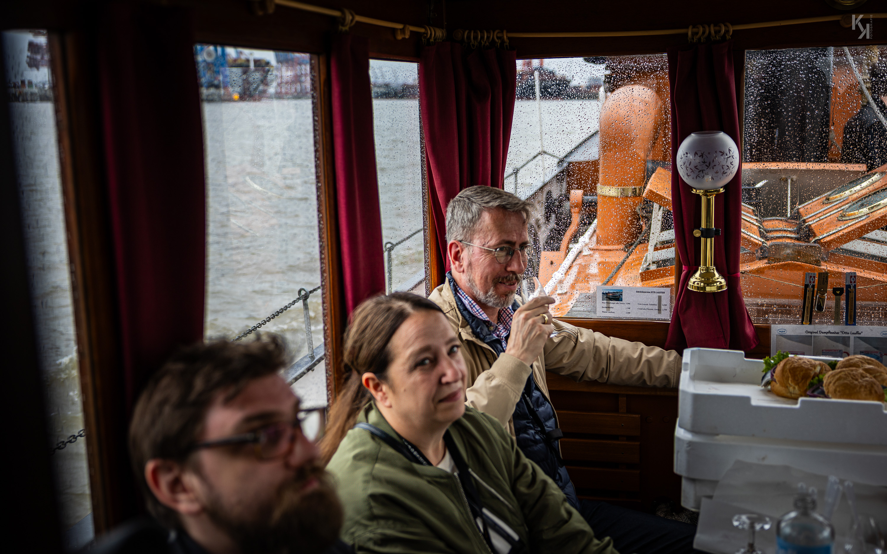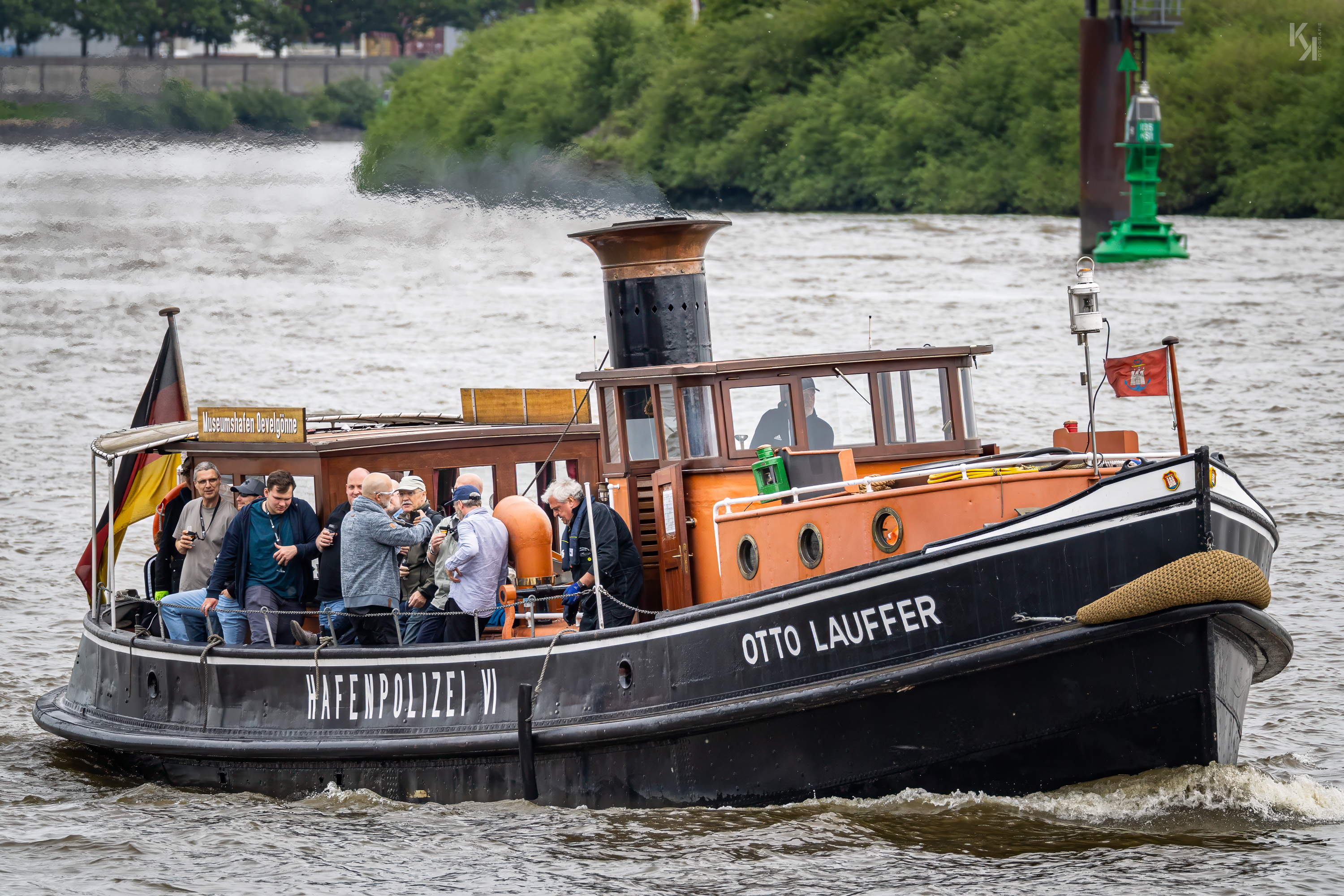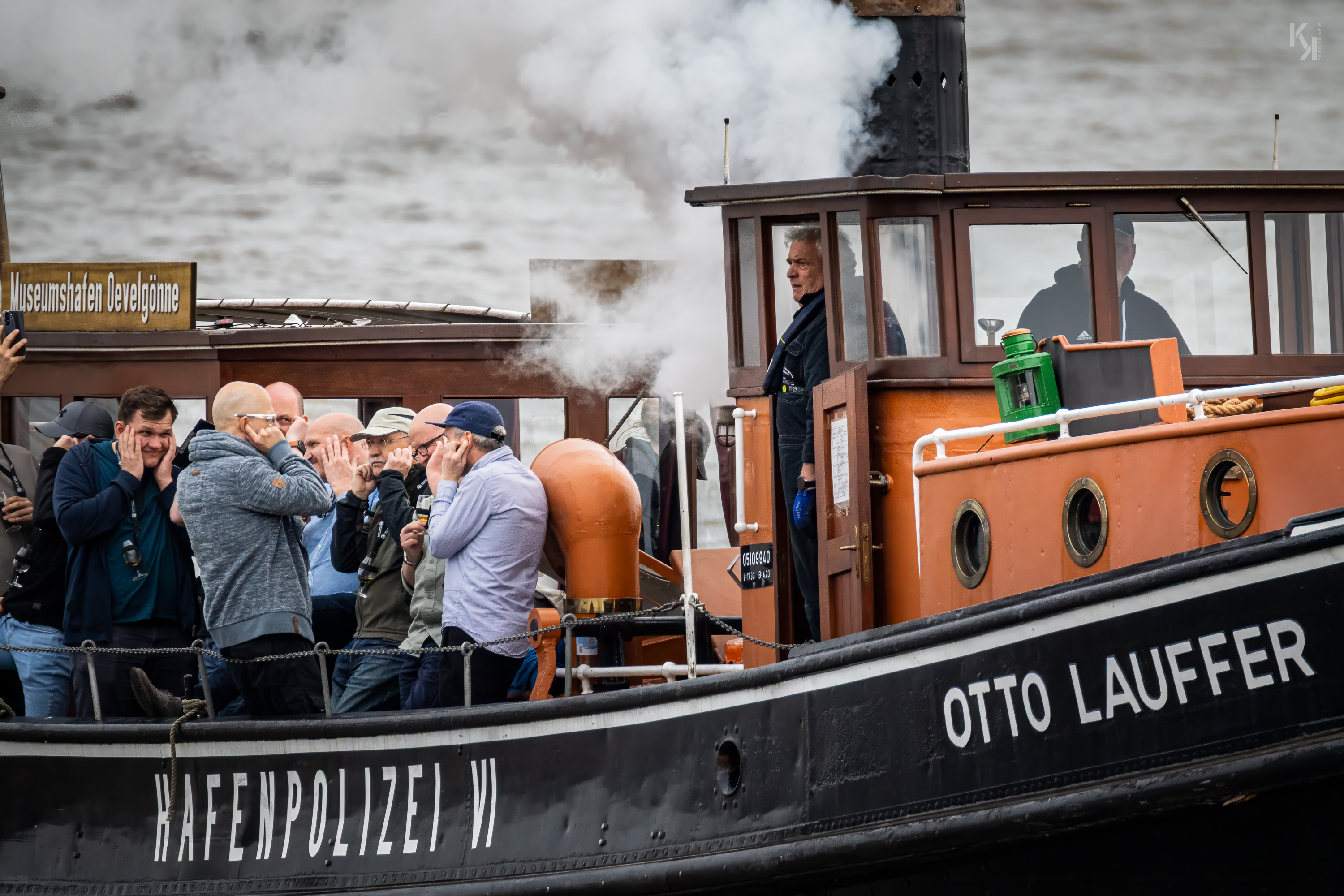 Mittlerweile kann man den jährlichen Ausflug auf der Elbe mit einem alten Schiff oder eben auch Boot ja schon als SMWS-Traditionsveranstaltung bezeichnen. Waren wir im vergangenen Jahr mit dem alten Schleppdampfer "Claus D." unterwegs, war es im Jahr davor der etwas größere Motorsegler mit dem etwas prätentiosen Namen "Präsident Freiherr von Maltzahn". Und noch ein Jahr zurück, also im Jahr 2022, waren wir mit der alten Dampfbarkasse "Claus Lauffer" in den verwinkelten Seitenarmen des Elbhafens unterwegs. Und in diesem Jahr ist es nun wieder jene alte Museumsdampfer "Otto Lauffer" geworden, den ich persönlich sehr mag. Die Atmosphäre ist immer sehr urig und die Crew freundlich mit immer einen flotten Spruch auf den Lippen. Aus der Erinnerung heraus weiß ich jetzt leider nicht mehr, ob in den weiter zurückliegenden Jahren noch weitere Bootsfahrten stattfanden.