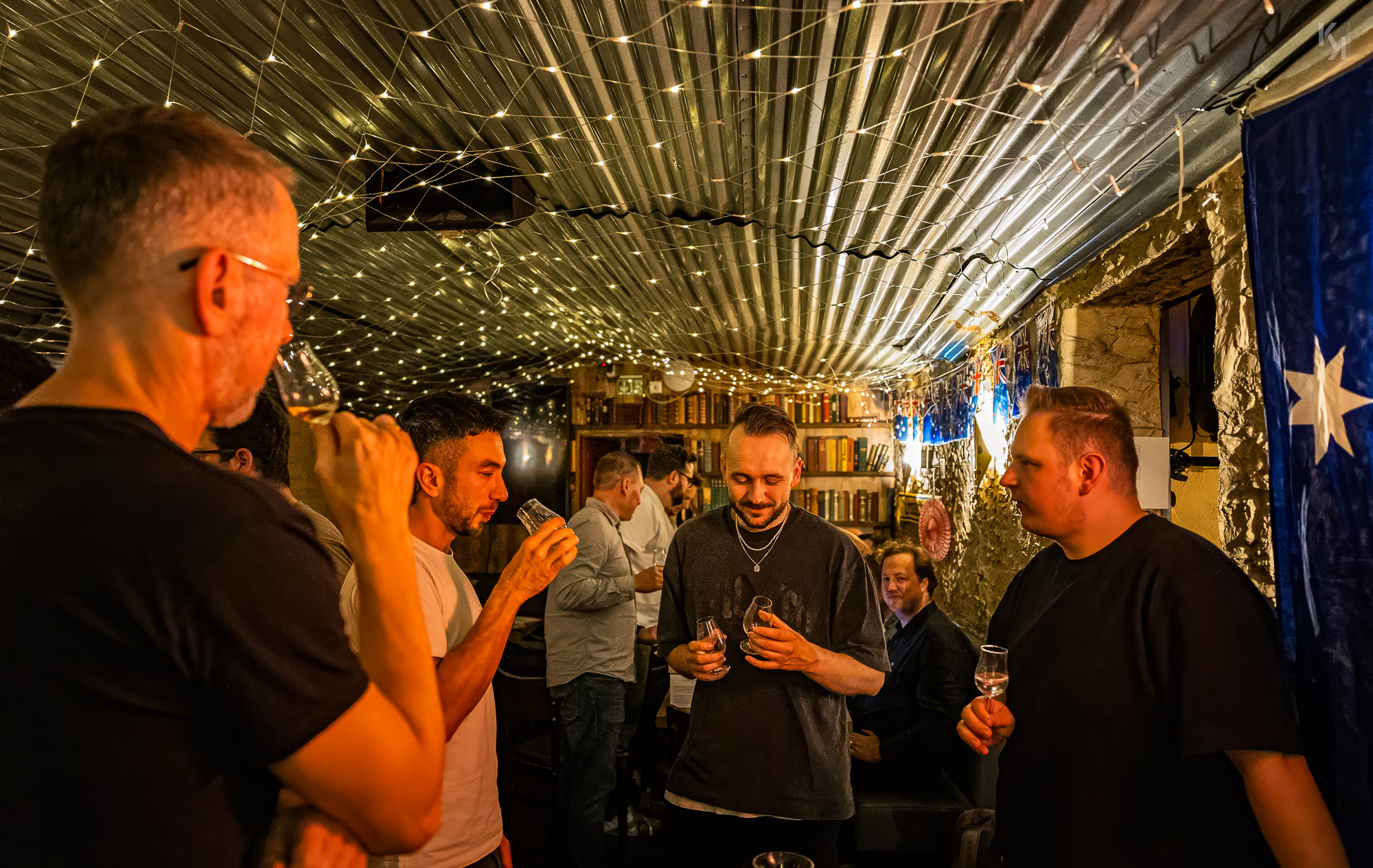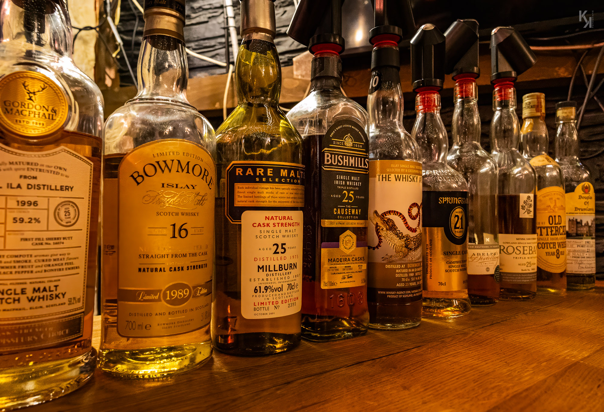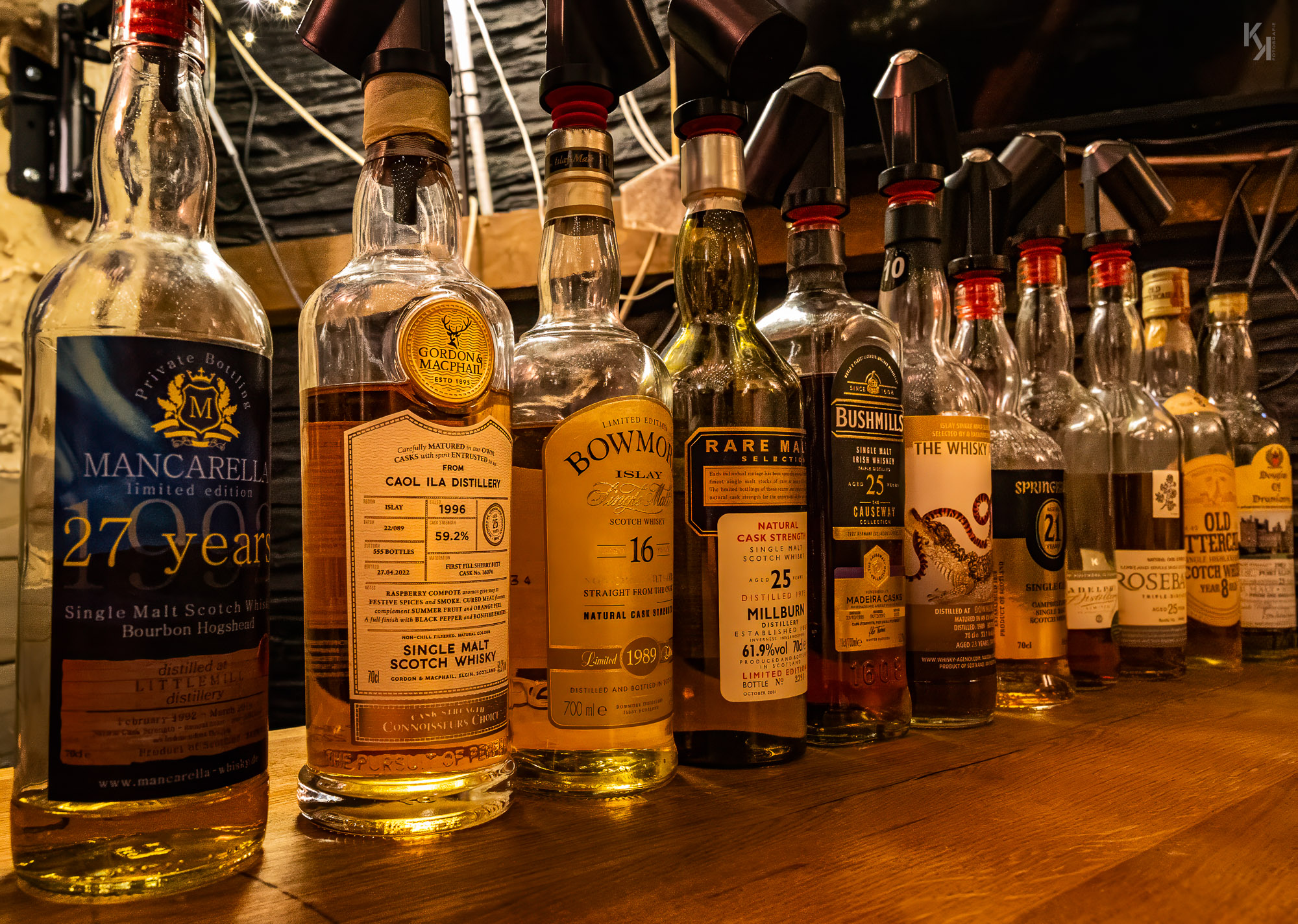 Am Vorabend der Whisky Live im Congress-Centrum-Hamburg fand wieder ein Bring your own bottle-Abend statt, wieder organisiert und moderiert von Sebastian Koch. Zusammengefunden haben wir uns dieses Mal im Down Under, einem australischen Pub in der Grindelallee, quasi bei mir um die Ecke. Basti hatte in dem Pub für uns einen kleinen abgeteilten Raum reserviert und es kamen wieder whiskybesessene Leute aus ganz Deutschland. Was nicht weiter verwunderlich war, fand doch an den nächsten 2 Tagen die Whisky Live von Kirsch Import im CCH statt. Somit mutierte der Abend quasi zum Aufwärmen für das lange Wochenende im CCH, was ihm am Ende des Abends auch ganz hervorragend gelungen ist. Das Konzept des Abends ist mit dem des vorhergehenden Events in Itzehoe bei Flickenschild identisch (hier der Link zum Bericht). Ich will auch gar nicht lang über die Flaschen schreiben, welche wir verkosten konnten, die Fotos sprechen für sich, denke ich. Für mich waren unterm Strich wieder alte Standards die Highlights des Abends, namentlich ein 12-jähriger Bowmore mit 43% vol und ein 8 Jahre alter Fettercairn mit ebenfalls 43% vol. Beide müssen irgendwann in den 70er Jahren des letzten Jahrhunderts abgefüllt worden sein und haben mich schlicht und ergreifend umgehauen. Schade, dass heutzutage solche Flaschen nur noch zu astronomischen Preisen auf dem Sekundarmarkt zu bekommen sind. Man kann sagen, was man will, aber es sind Welten, die die damaligen Standard Single Malts von den heutigen Standards unterscheidet.