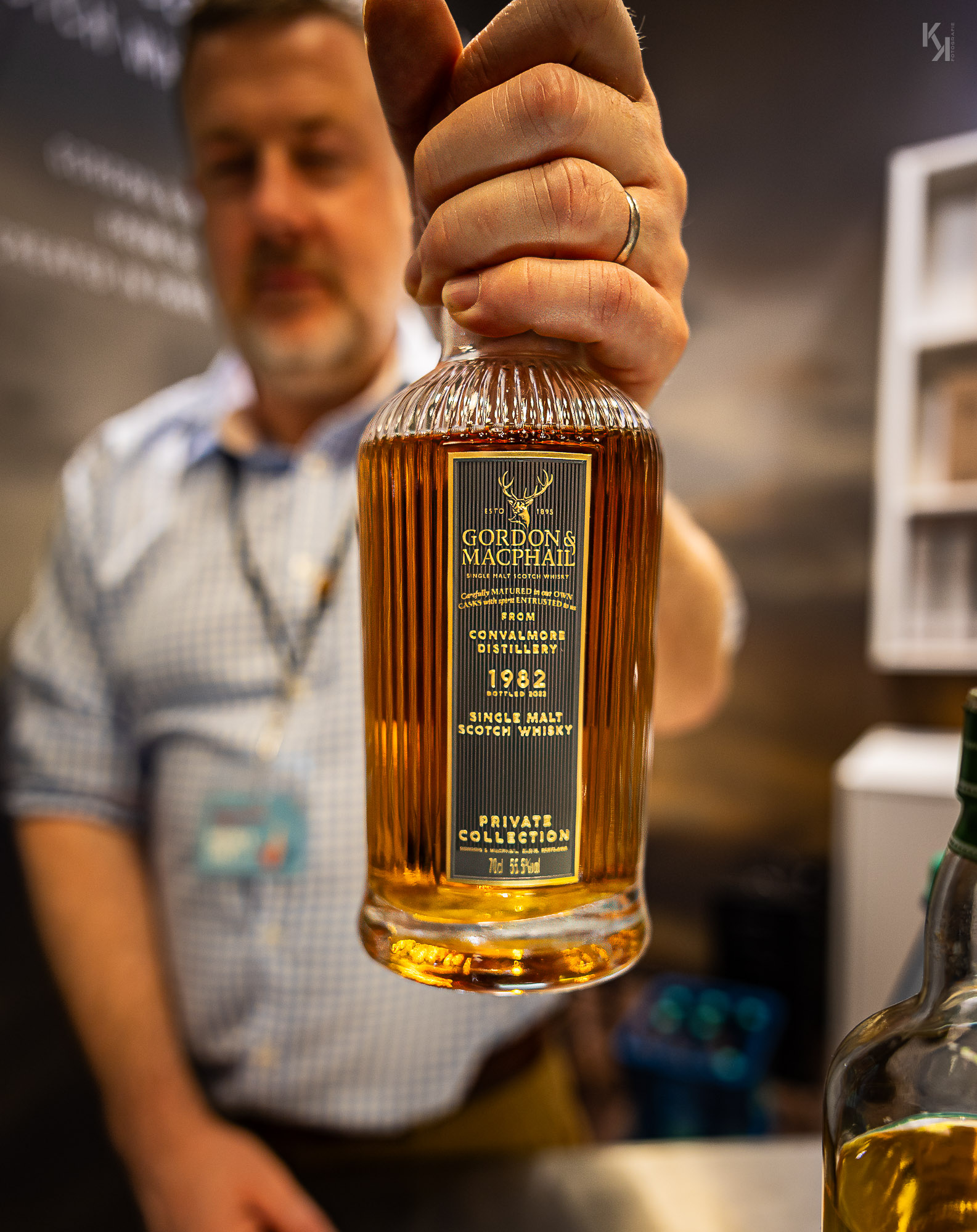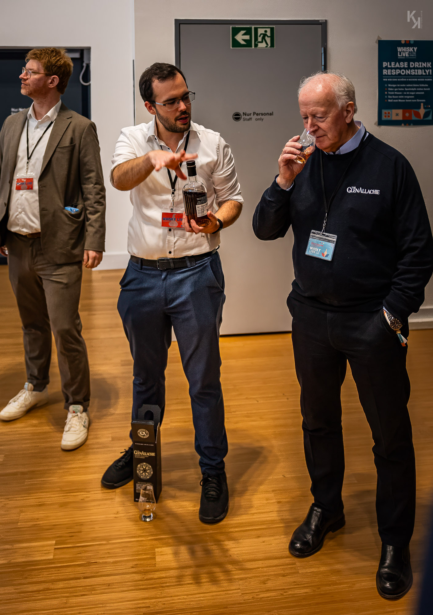 Am Sonntag dann, dem Fachbesuchertag, ging es dann ein wenig ruhiger zu. Klar, die Anzahl der Besucher war geringer als am Vortag, aber auch nicht so wenig, dass sich die Besucher in den Räumen verliefen. Trotzdem empfand ich den Sonntag als deutlich entspannter, was vermutlich auch daran lag, dass ich meine Kauf-Agenda bereits am Vortag abgearbeitet habe. An diesem Tag habe ich dann auch ein paar alte Schätze bei Gordon & MacPhail probieren dürfen. Ganz großes Kino. Im Gedächtnis ist mir vor allem ein 82er Convalmore geblieben, der angesichts seiner 40 Jahre im Fass trotzdem noch mit sehr wuchtigen 55,5% vol daherkam und mich mit seiner ausgeprägten würzigen Eichennote in seinen Bann zog.