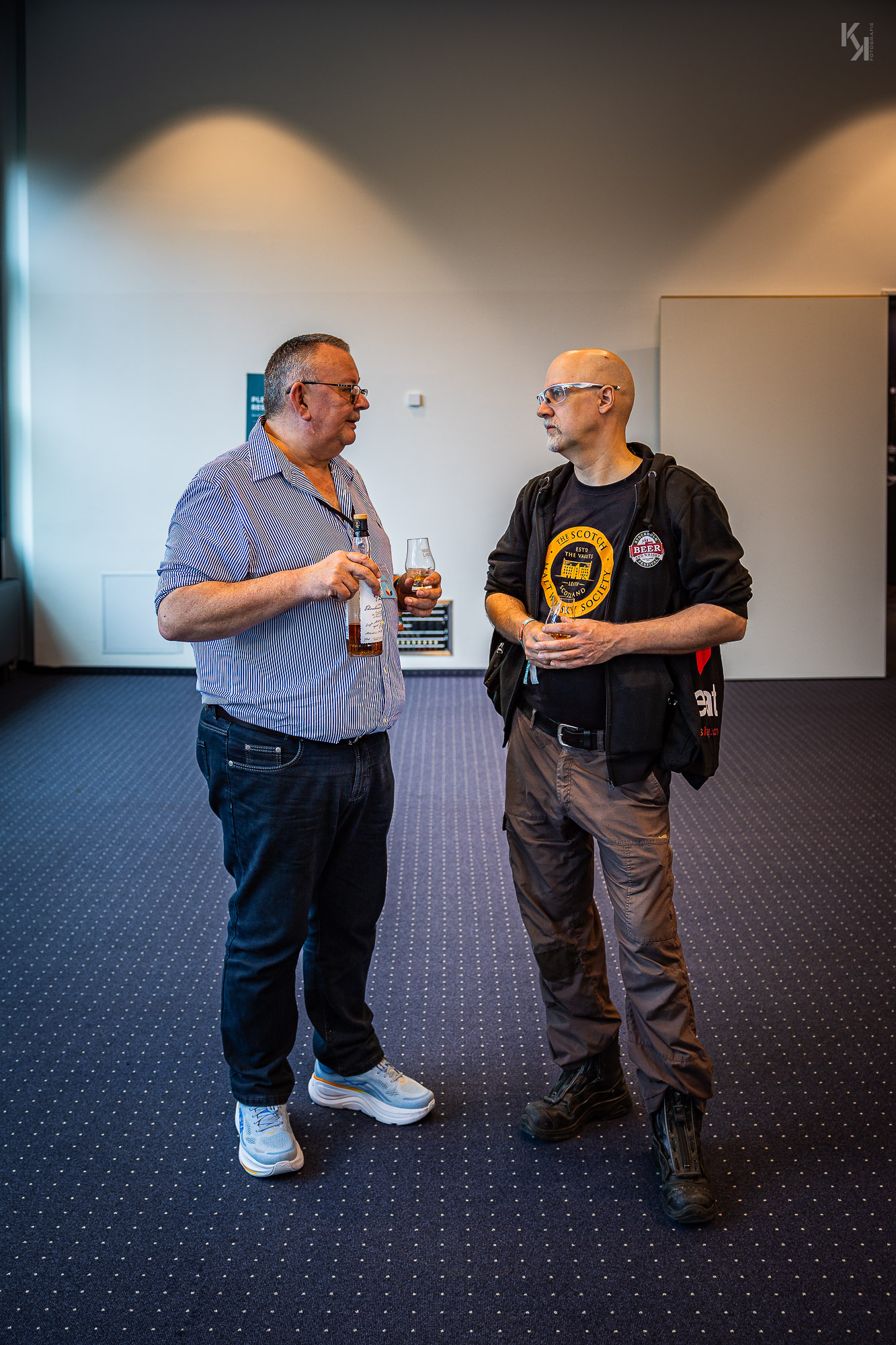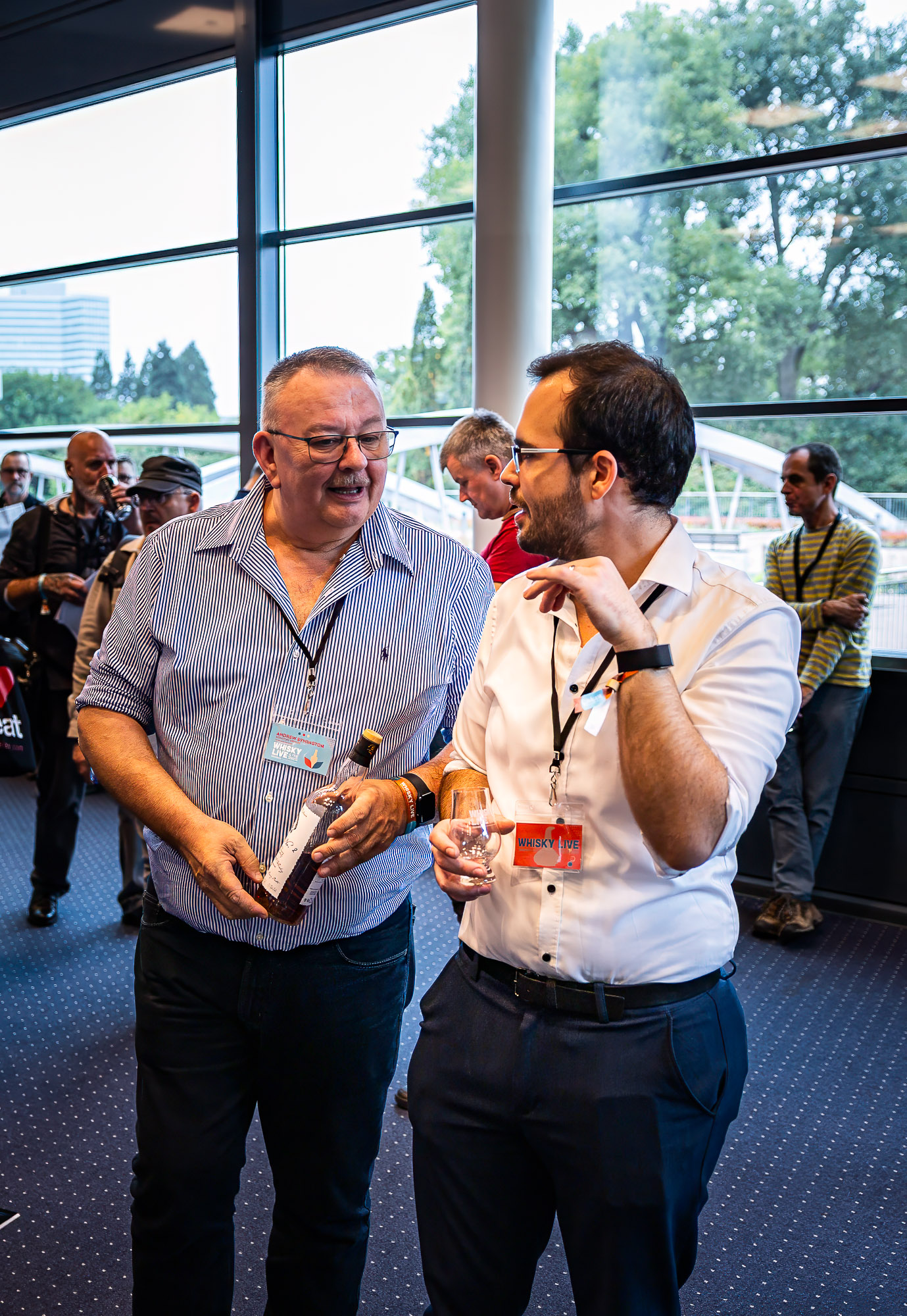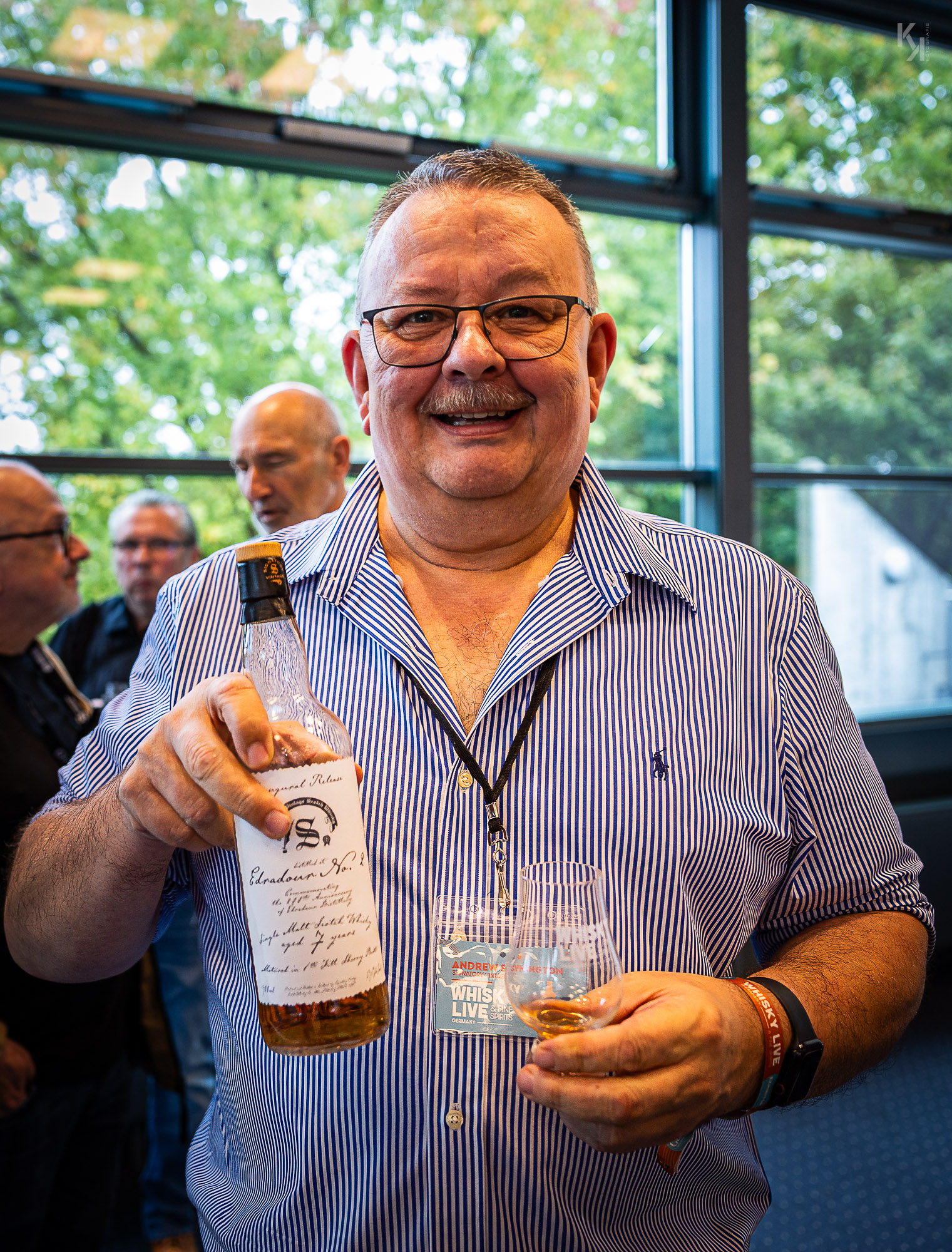 Ich konnte an beiden Tagen dabei sein und ich muss sagen, es wurde zu keinem Zeitpunkt langweilig. Nicht zuletzt auch deshalb, weil man alle paar Meter ein bekanntes Gesicht sah und sich natürlich erst mal begrüßen musste. Dabei habe ich endlich auch Stefan Brösel persönlich treffen können. Hat mich sehr gefreut, Grüße in den Süden der Republik. Es war natürlich auch jede Menge Whisky-Prominenz vor oder hinter den jeweiligen Ständen anzutreffen, stellvertretend seien hier nur Andrew Symington (Edradour, Signatory) und Billy Walker (GlenAllachie) genannt, die sich beide als sehr nahbar und gesprächsfreudig erwiesen. Sehr schön.