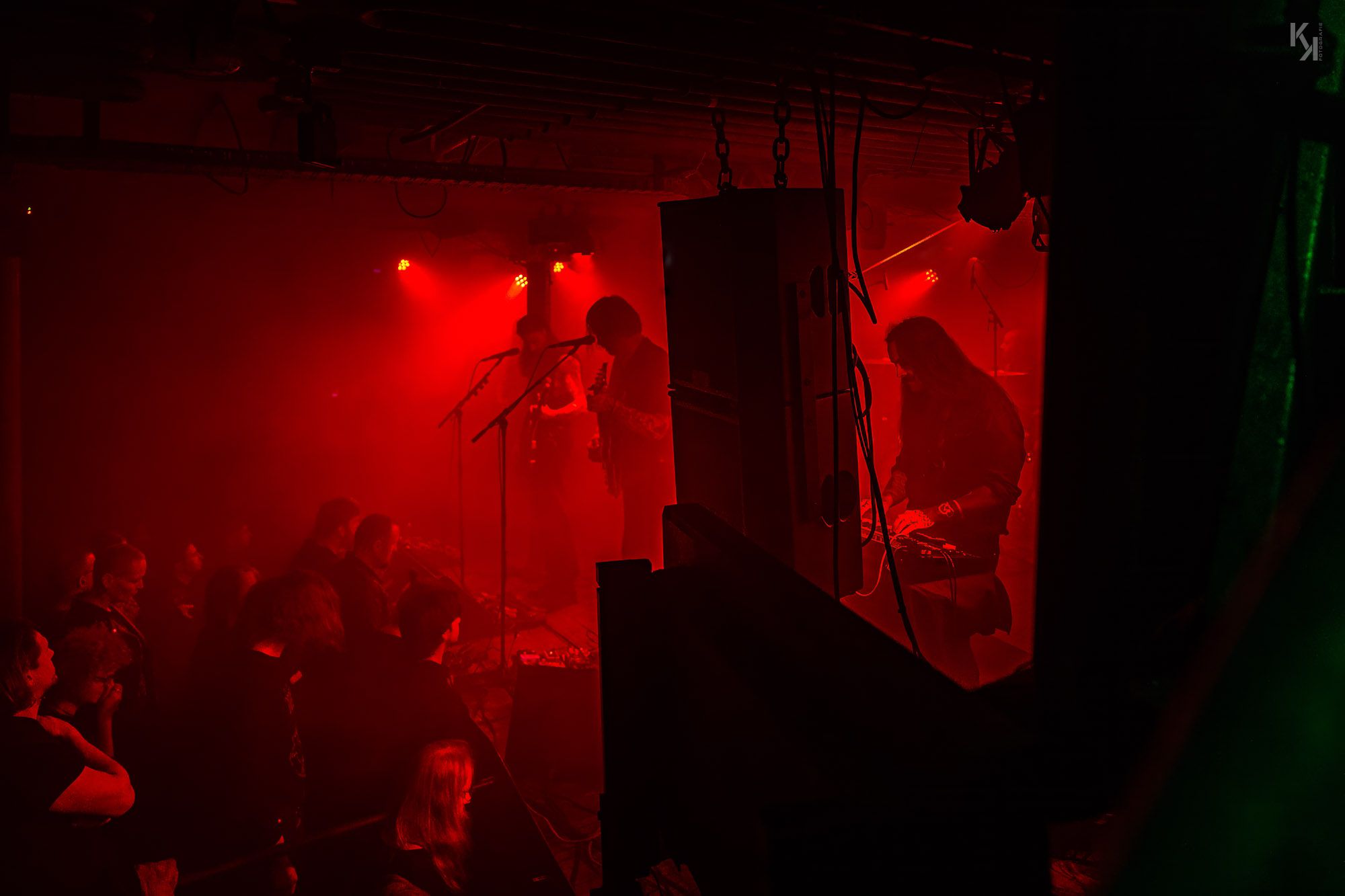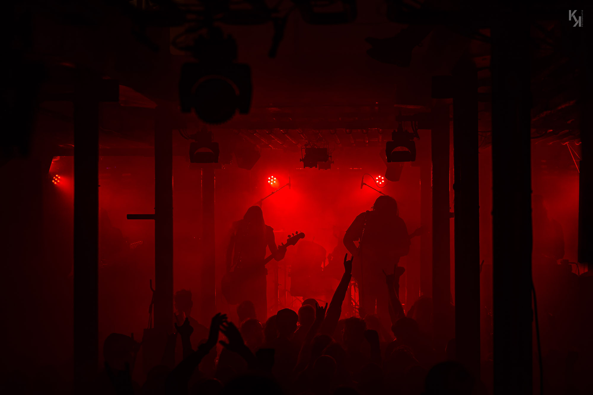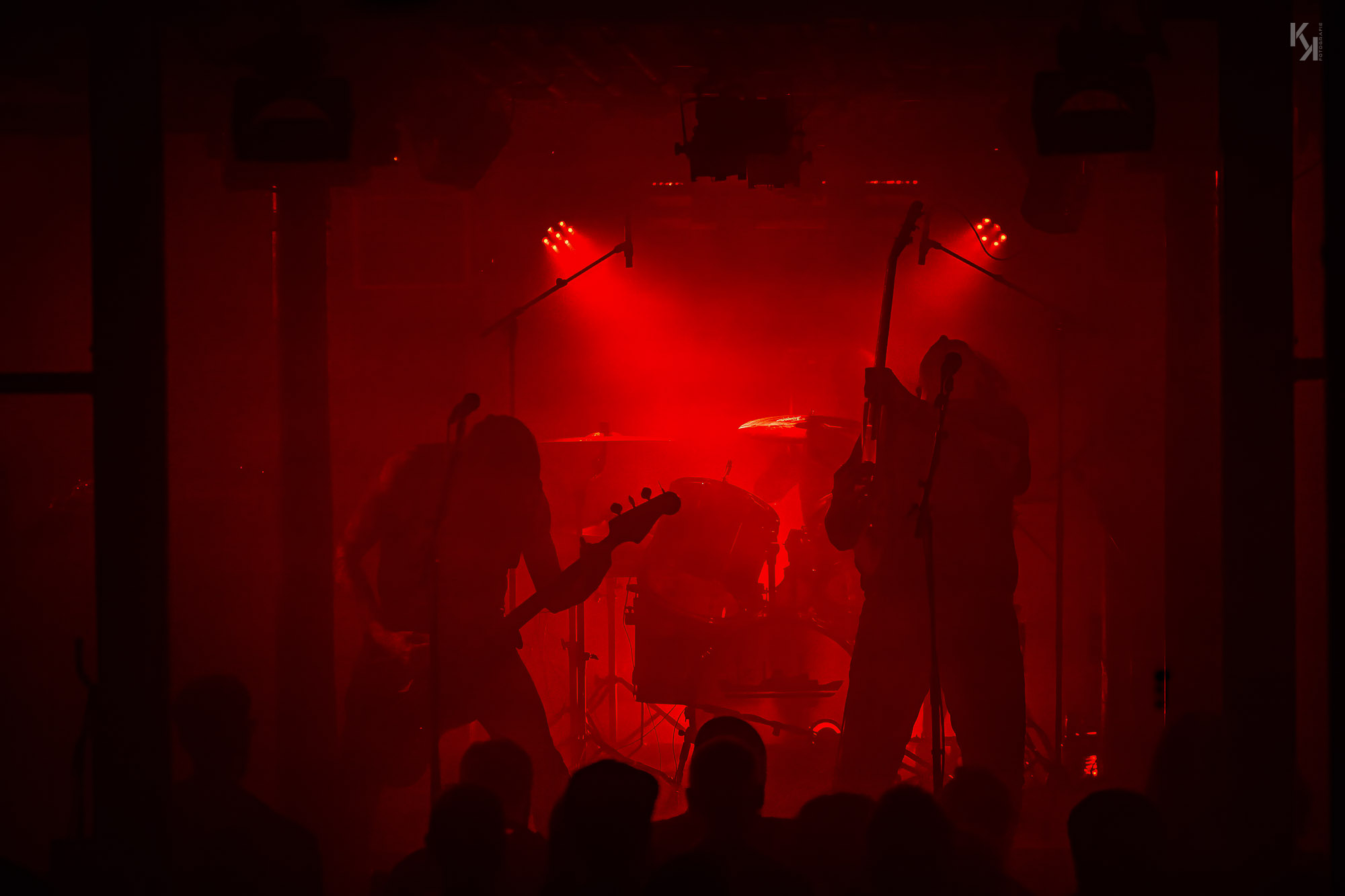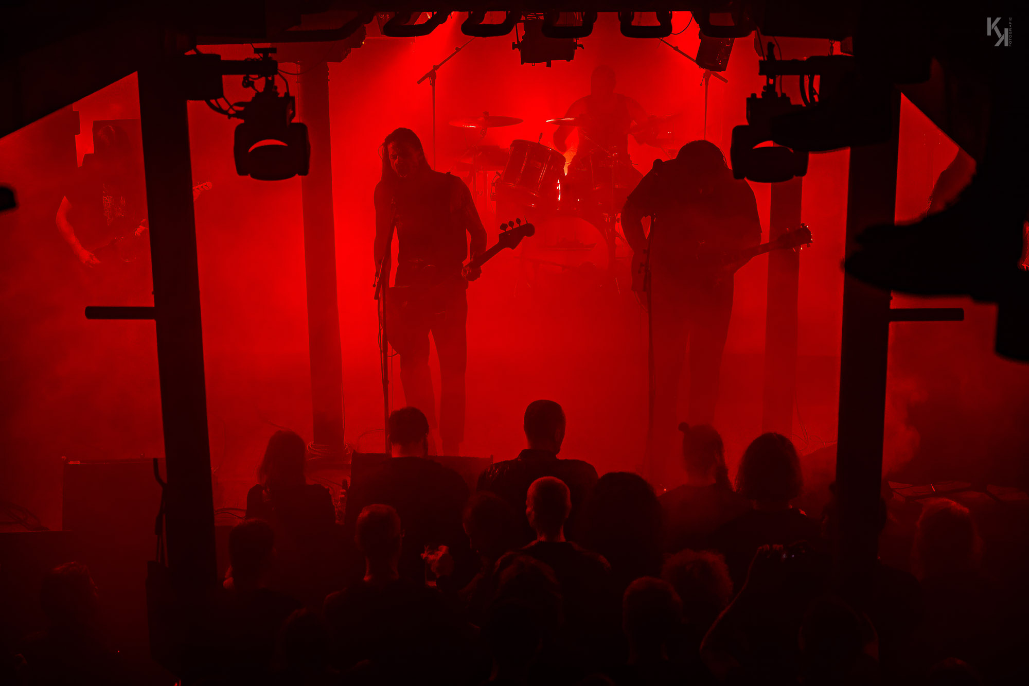Nachdem die üblichen Umbauten auf der Bühne erfolgt waren, kündigte die in rot getauchte Bühne den Auftritt von Ultha an. Und die legten auch gleich mit Songs vom soeben erschienen Album "A Light So Dim" los. Auch hier gab es wieder von Beginn an einen klaren, fetten Sound. Und auch die über das gesamte Konzert beständig in rotes Licht gepaart mit reichlich Nebel getauchte Bühne, aus fotografischer Sicht eher suboptimal, hatte auf mich eine gewisse Wirkung. Es passt richtig gut zum Sound der Band und verlieh dem stellenweise psychedelischen Charakter des Sounds noch einen leicht hypnotischen Touch.