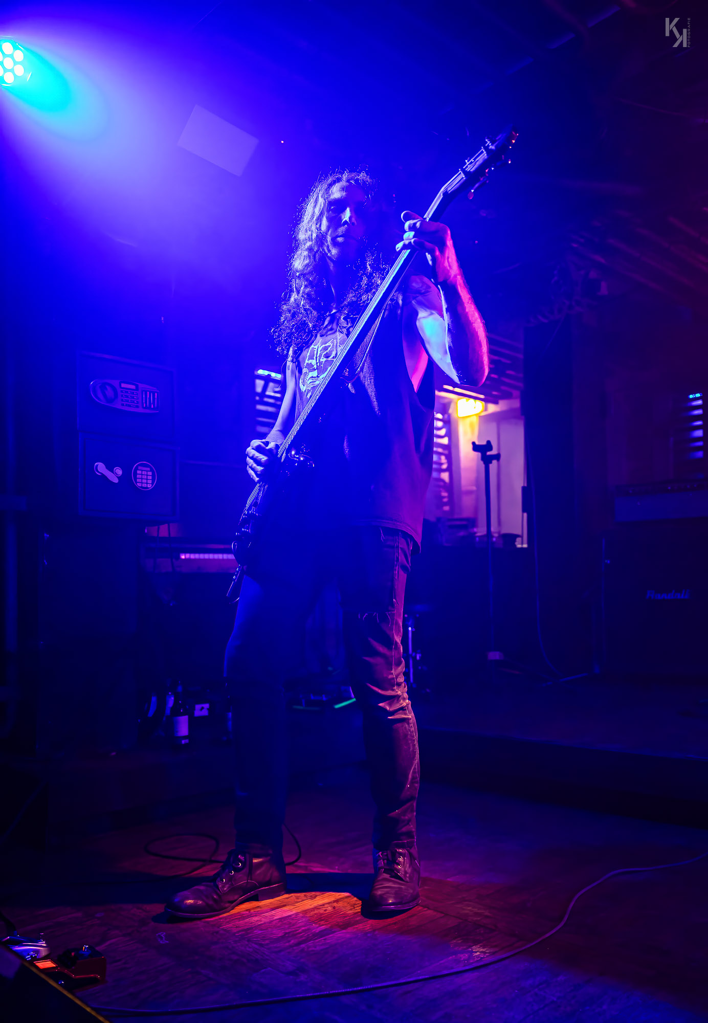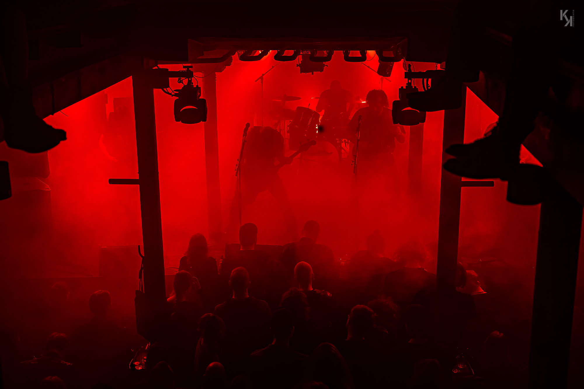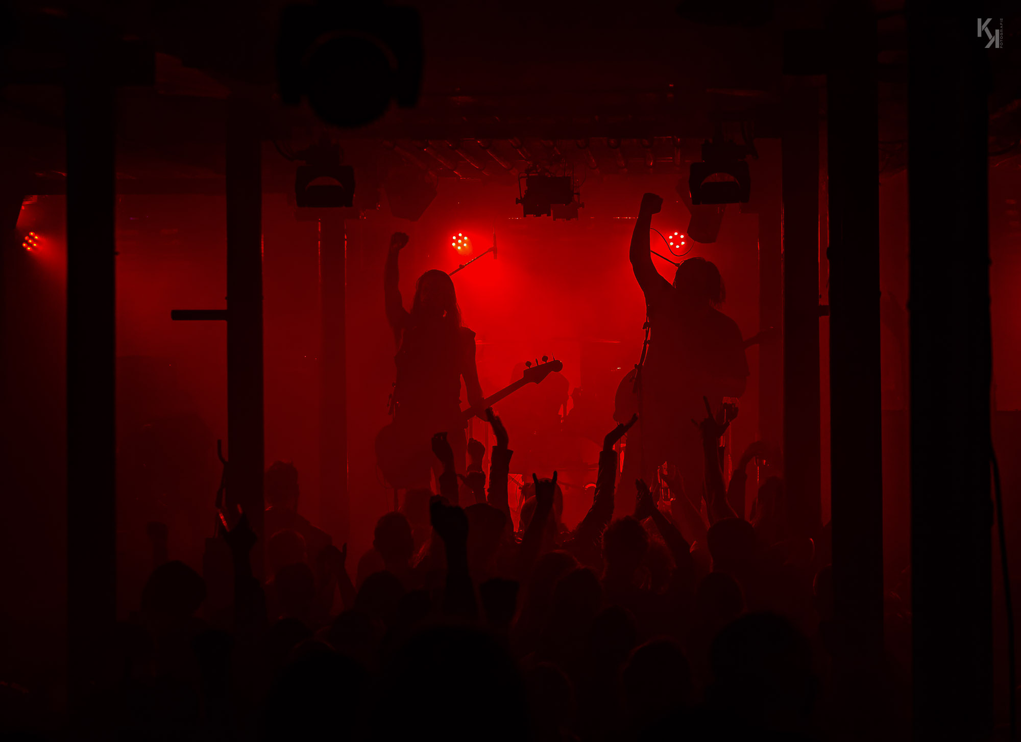 Nachdem die üblichen Umbauten auf der Bühne erfolgt waren, kündigte die in rot getauchte Bühne den Auftritt von Ultha an. Und die legten auch gleich mit Songs vom soeben erschienen Album "A Light So Dim" los. Auch hier gab es wieder von Beginn an einen klaren, fetten Sound. Und auch die über das gesamte Konzert beständig in rotes Licht gepaart mit reichlich Nebel getauchte Bühne, aus fotografischer Sicht eher suboptimal, hatte auf mich eine gewisse Wirkung. Es passt richtig gut zum Sound der Band und verlieh dem stellenweise psychedelischen Charakter des Sounds noch einen leicht hypnotischen Touch.