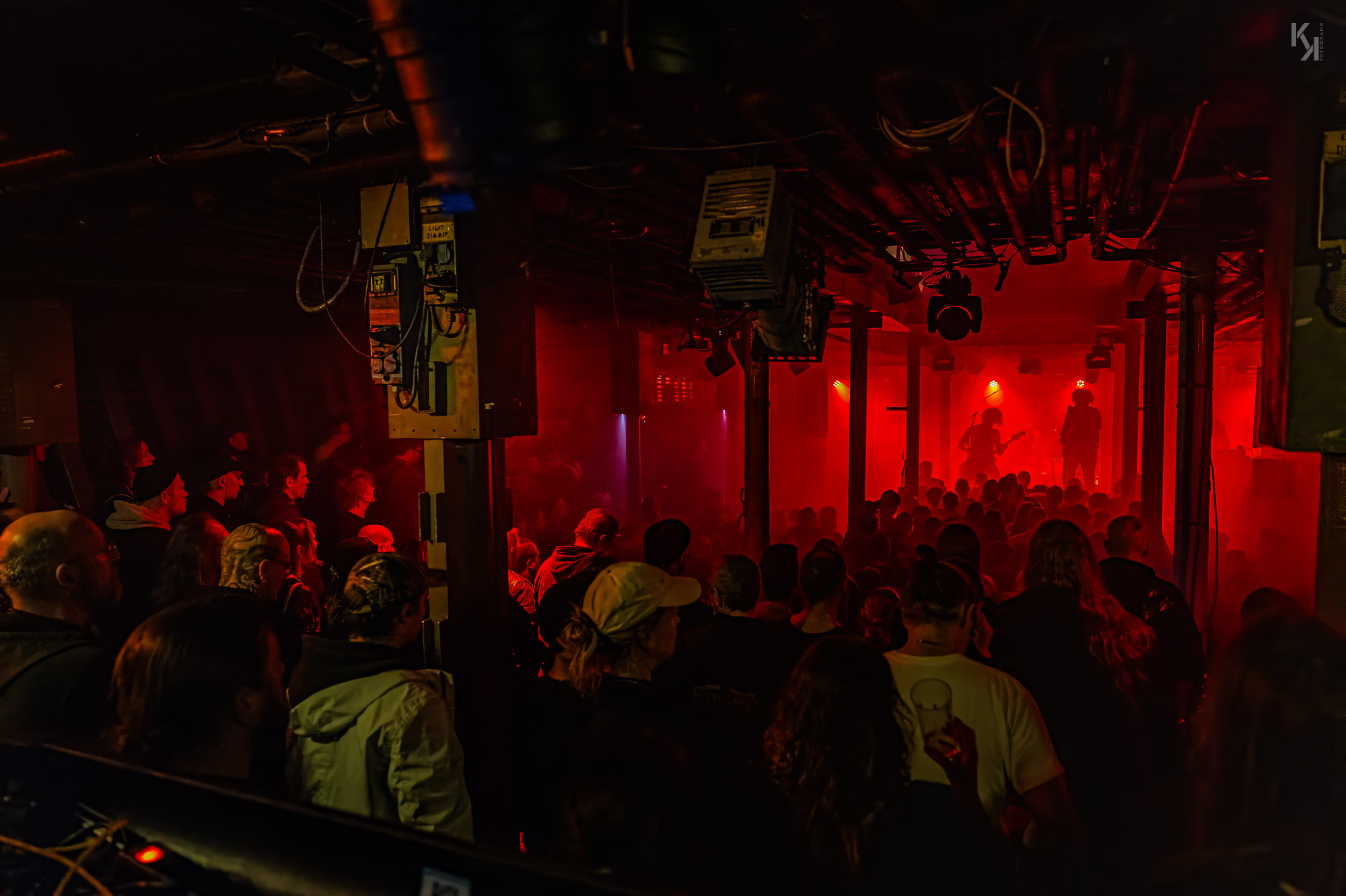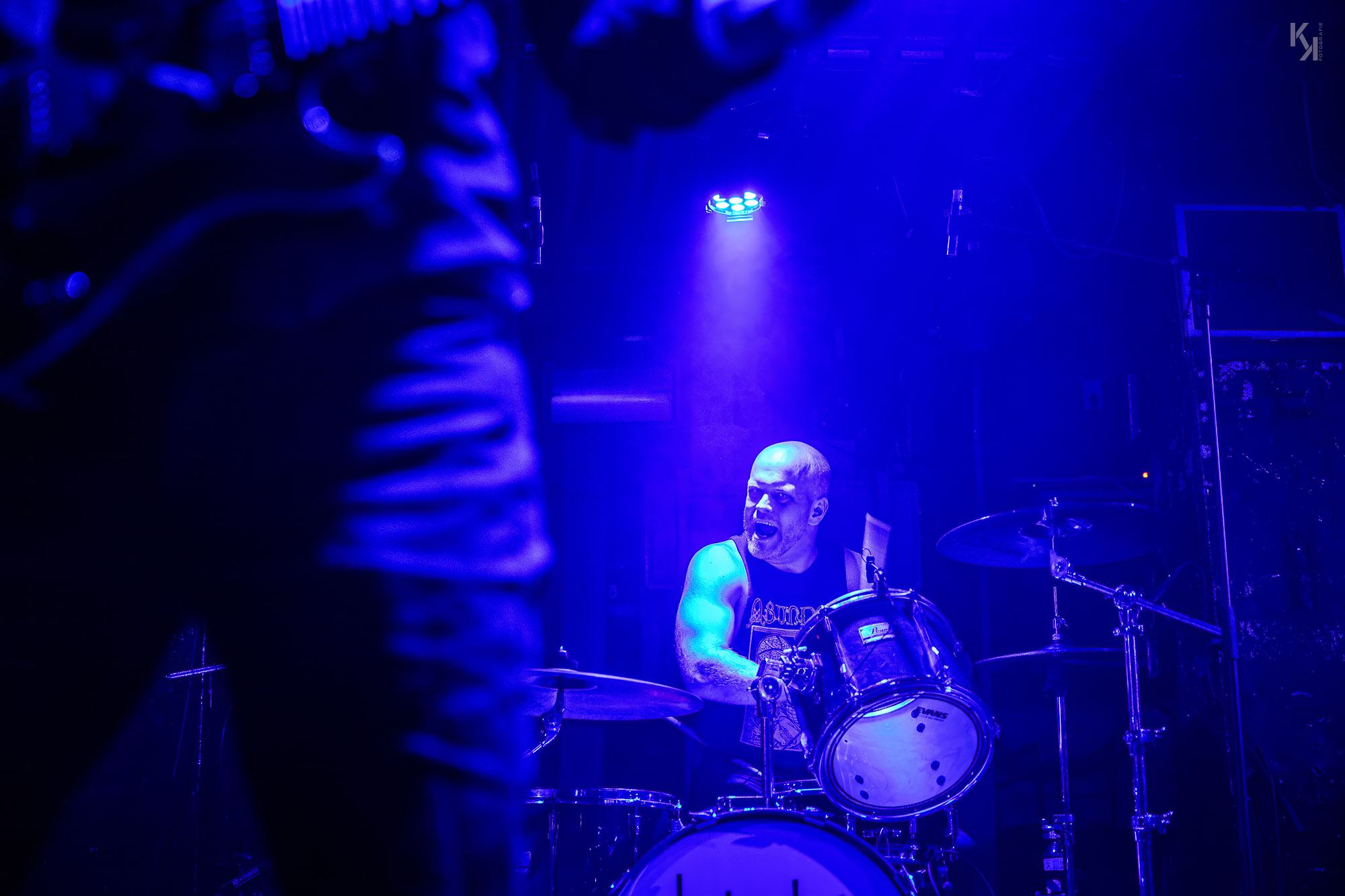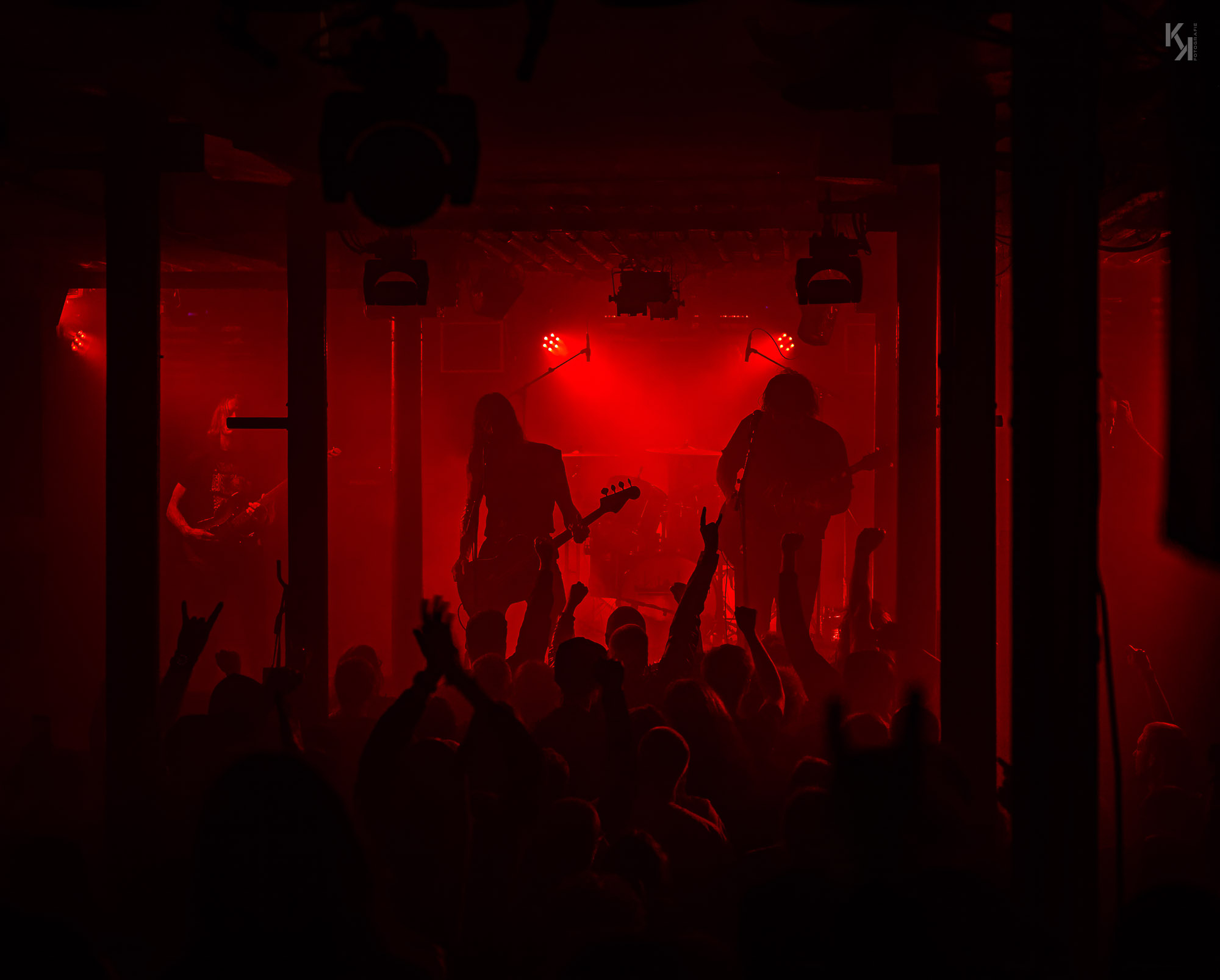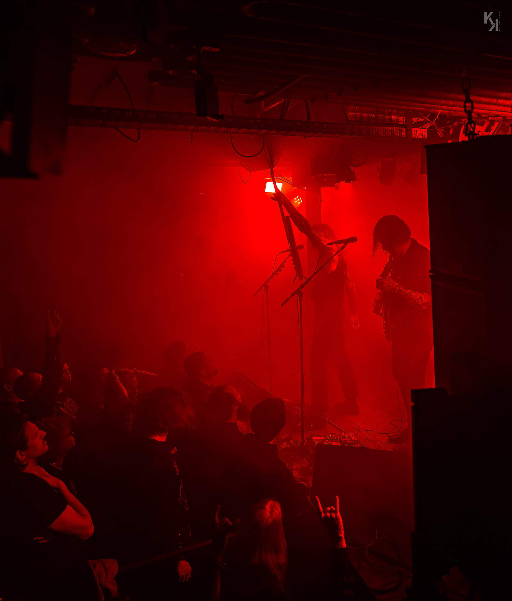 Nachdem die üblichen Umbauten auf der Bühne erfolgt waren, kündigte die in rot getauchte Bühne den Auftritt von Ultha an. Und die legten auch gleich mit Songs vom soeben erschienen Album "A Light So Dim" los. Auch hier gab es wieder von Beginn an einen klaren, fetten Sound. Und auch die über das gesamte Konzert beständig in rotes Licht gepaart mit reichlich Nebel getauchte Bühne, aus fotografischer Sicht eher suboptimal, hatte auf mich eine gewisse Wirkung. Es passt richtig gut zum Sound der Band und verlieh dem stellenweise psychedelischen Charakter des Sounds noch einen leicht hypnotischen Touch.