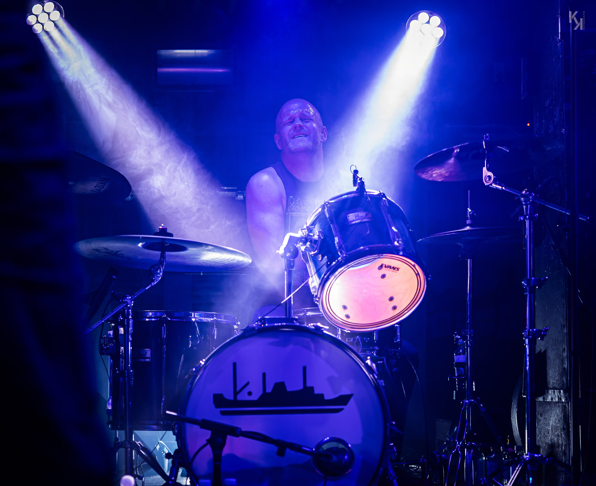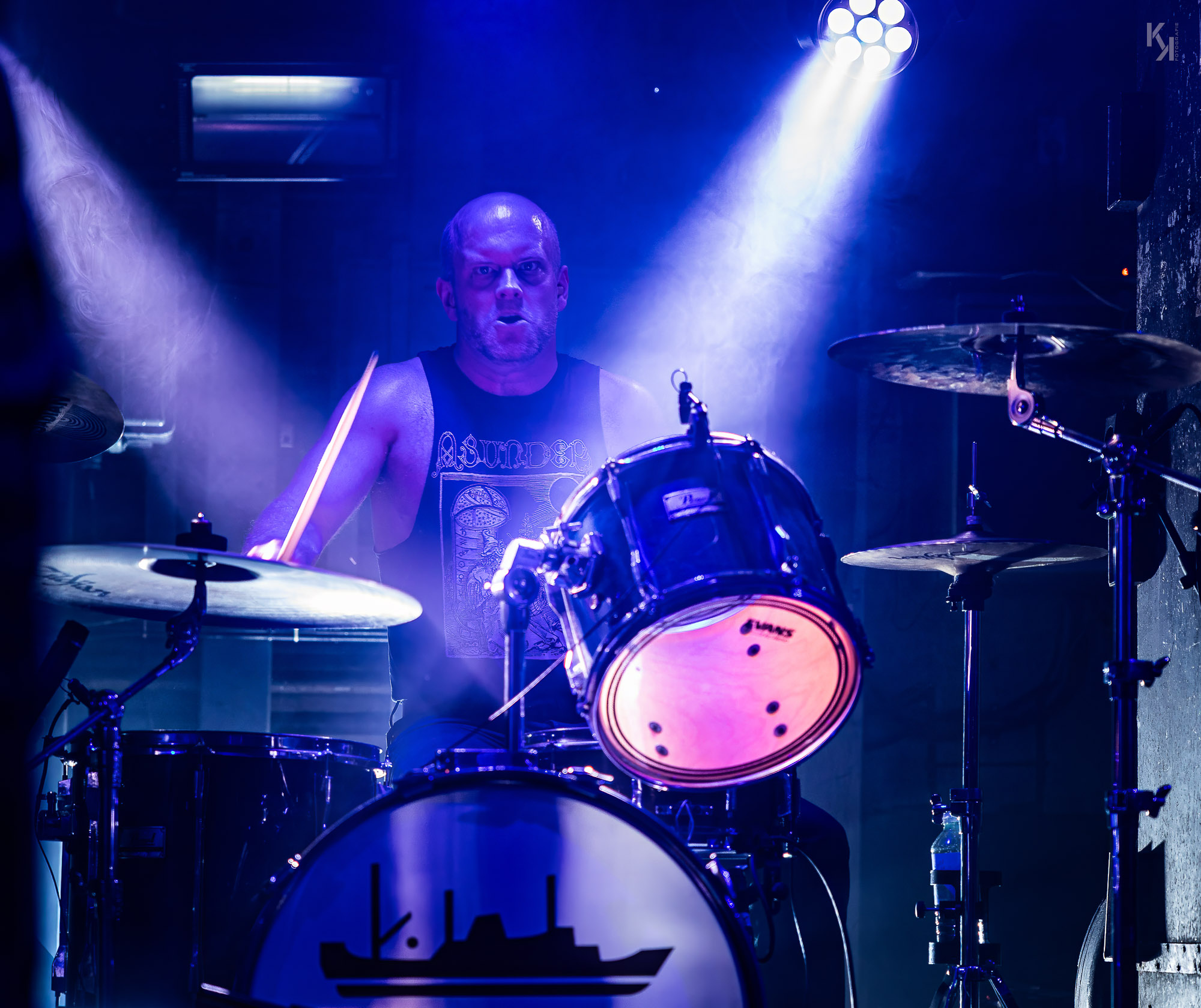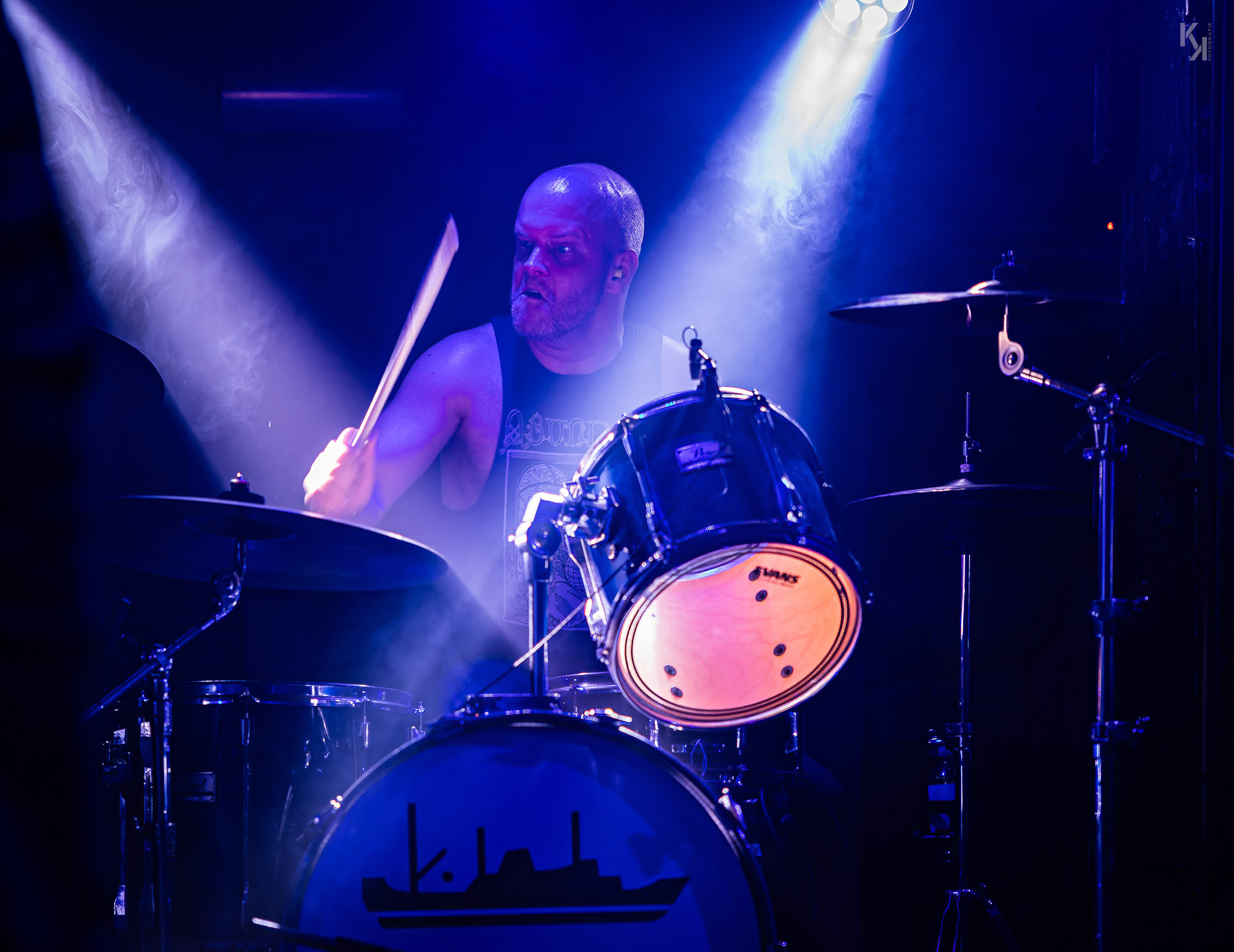 Der melancholische, mit teils epischen und teils angeschrägten Gitarren-Riffs versehene Post Black Metal der Band (erinnert teilweise an Wolves In The Throne Room) brauch keine großartige Bühnenshow. Im Gegenteil, das introvertierte Auftreten der Band unterstreicht das Soundbild der Band. Einziger Kontrastpunkt im Auftreten von Yellow Eyes war der Drummer. Ich weiß nicht, ob er bei jedem Auftritt so rüberkommt, aber hier auf der Stubnitz machte er den Eindruck, als ob er jede Menge Dampf auf dem Kessel hatte, der dringendst raus musste. Das war schon sehr intensiv, was bei dem Kollegen da abging. Insgesamt ein ganz feiner Auftritt, den Yellow Eyes am heutigen Abend hier ablieferten.
